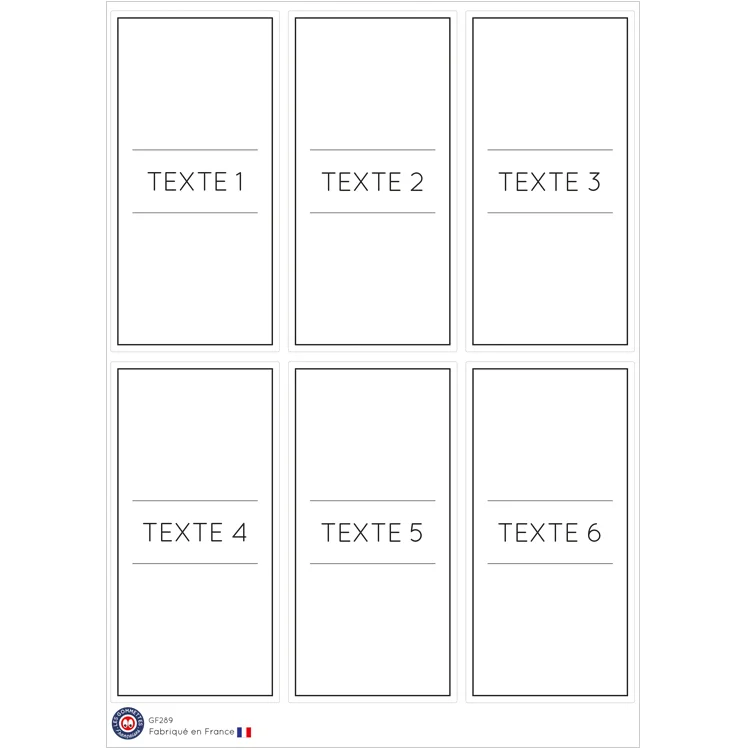 Dimension du stickers : 47 mm x 95 mm – Planche de 6 stickers.