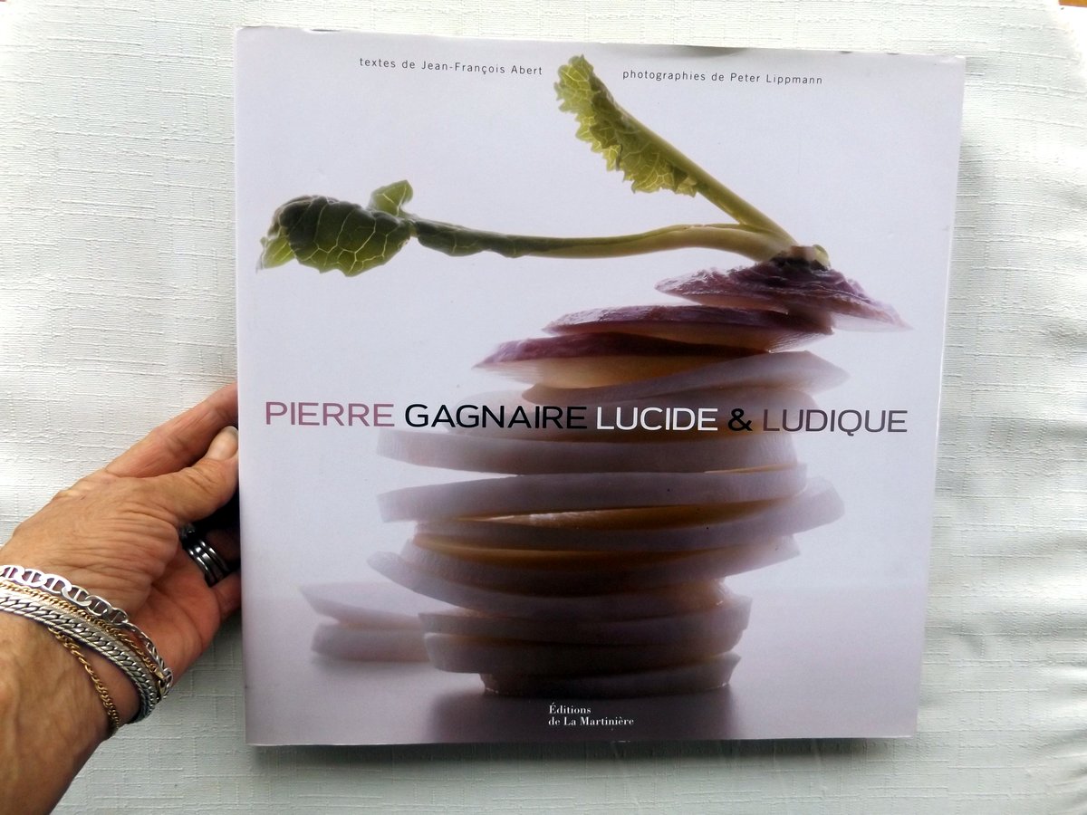 Paris, éd. de la Martinière, novembre 2006, EDITION ORIGINALE, gd. in-4 carré, cartonnage toilé gris éd., couv. photo coul. éd., 200 pp., papier glacé, très nb. photos coul. de Peter Lippmann, Sommaire, Recettes de base, Les mélanges d’épices et pâtes aromatiques, Liste des recettes. Ce livre est, comme tous les autres de Pierre Gagnaire, un évènement dans le monde culinaire français. Cet étoilé Michelin ne se contente pas de nous transmettre des recettes d’une façon « traditionnelle », ingrédients – poids – cuisson, mais au contraire il nous transporte dans SON monde de saveurs et de beauté, grâce aussi aux photographies de Peter Lippmann. L’auteur du livre a bien compris l’extraordinaire talent de ce chef hors norme ! Nous suivons ici son parcours depuis 1966 jusqu’à 2006, grâce aux nombreux menus et recettes qui ont évolués tout au long de sa carrière. Très RARE en édition originale. Très bon état 135€