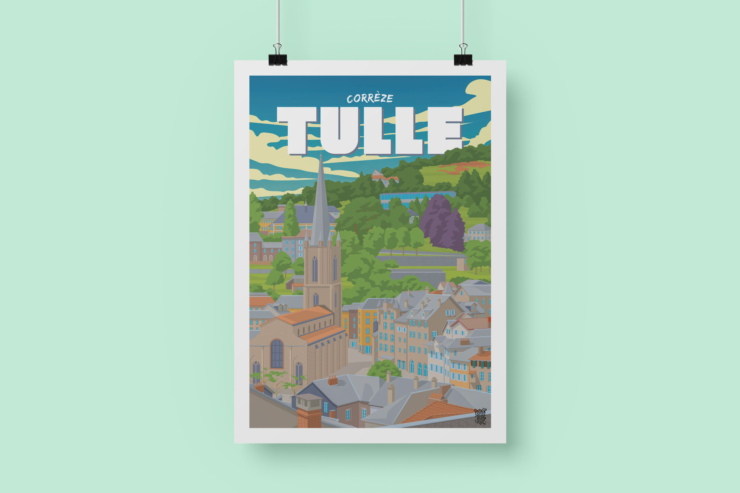 🏰 Découvrez le charme historique de Tulle avec ce poster au design rétro ! Ce village pittoresque, célèbre pour son patrimoine architectural et ses ruelles animées, est magnifiquement capturé en flatdesign. Un ajout parfait pour apporter une touche d’élégance et de culture à votre décor ! 🌟