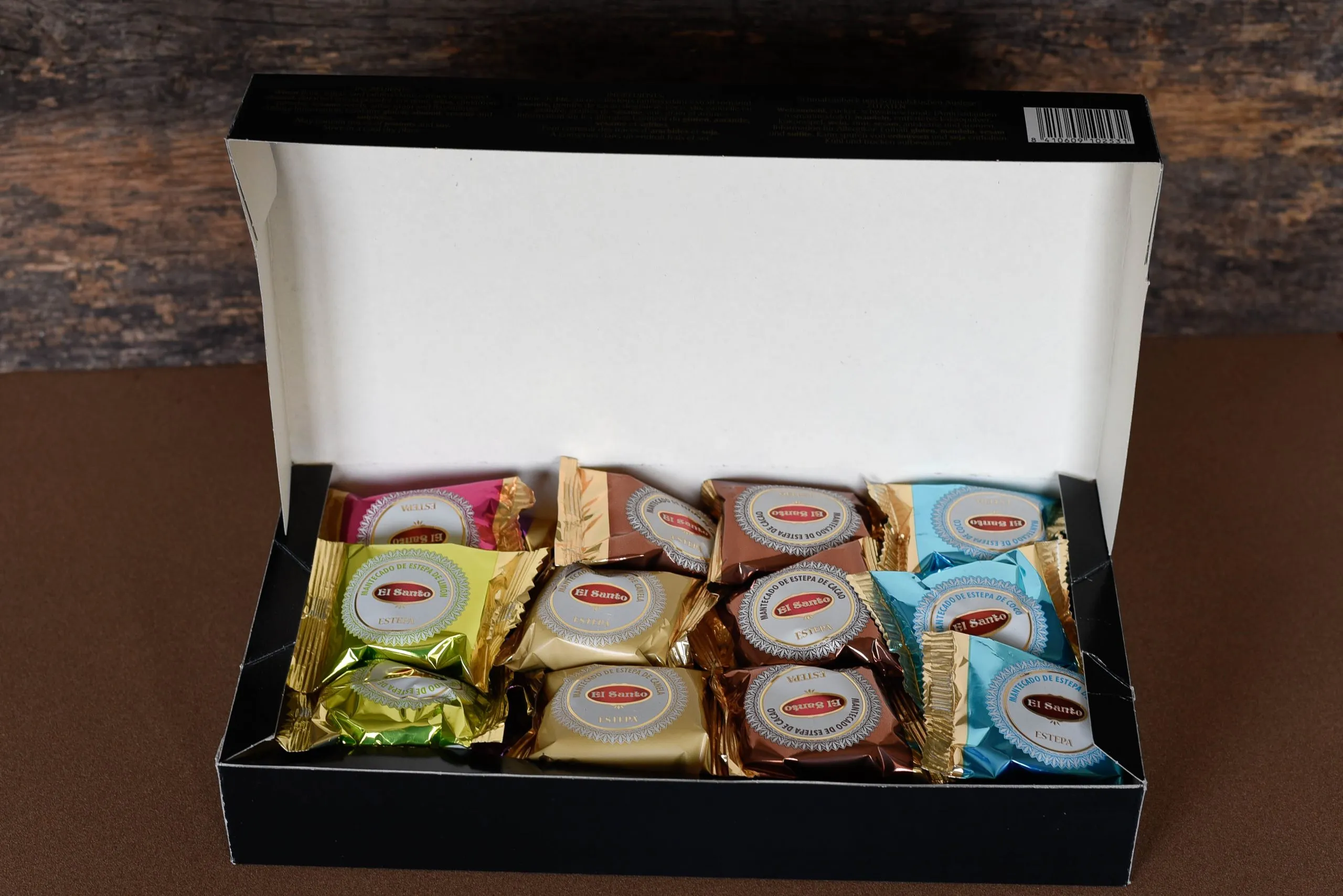 Biscuits sucrés d’Espagne, Surtido de Polvorones (750g) est un coffret classique de format moyen pour profiter en famille des saveurs traditionnelles de Noël. Contient des mantecados traditionnels, des Polvorones, des Roscos de Vino et des Alfajores.