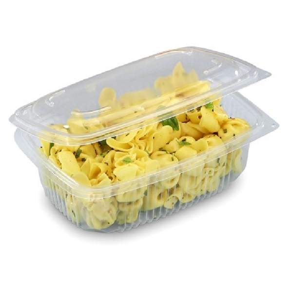 Barquette Ondipack à charnière, couvercle attaché plastique transparente.