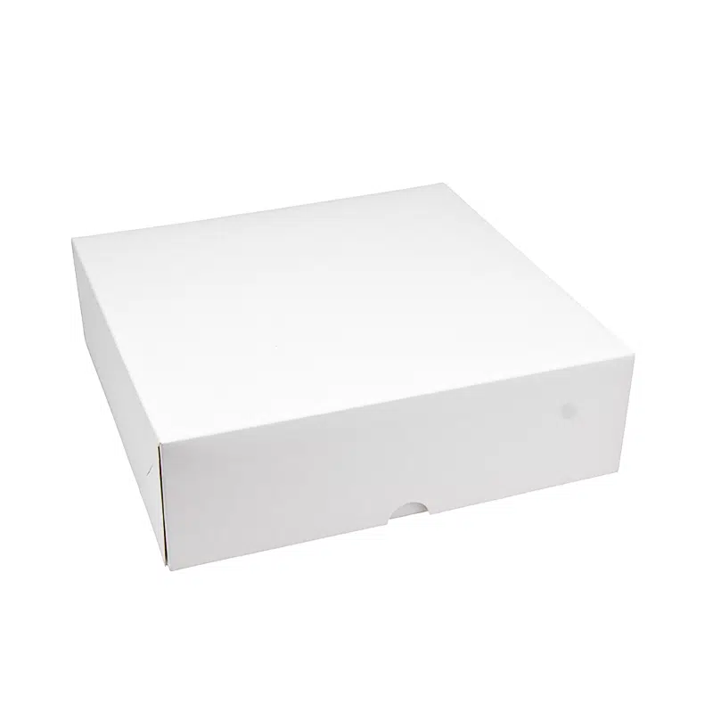 Description de notre boite pâtissière carton blanche 26 x 8 cm par 50