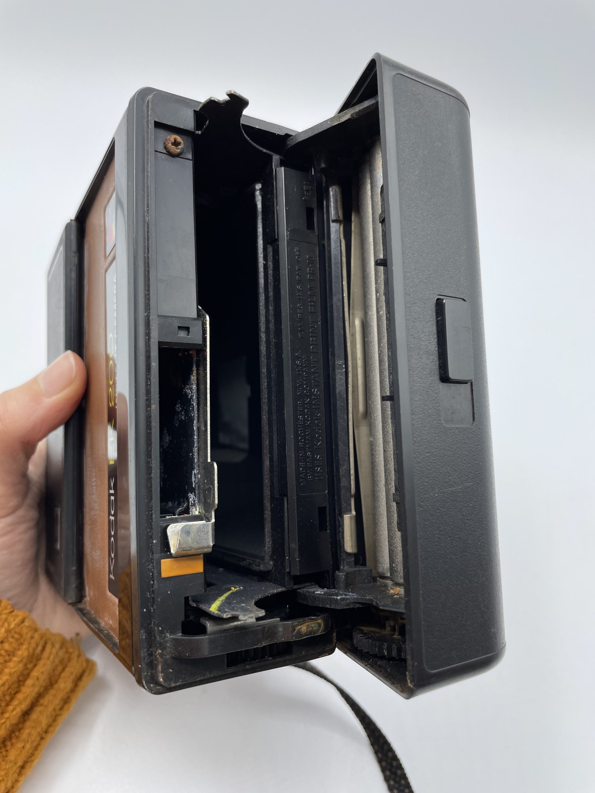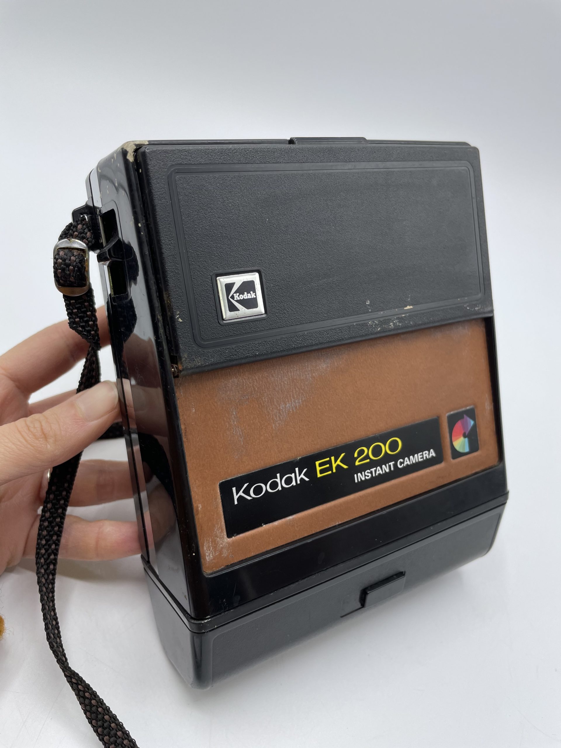 Ce joli boîtier vintage est un modèle d’appareil photo vintage polaroid Kodak EK 200. Produit de 1978 à 1980, cet appareil photo vintage permet de prendre des photo en instantané. Vintage, l’appareil présente quelques traces d’usure. Vendu en l’état et devra être testé. Un joli boîtier tout droit sorti des années 80 !