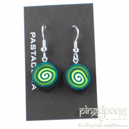 Jolies petites boucles d’oreilles pendantes vertes et jaunes de marque « Pastacuita ».