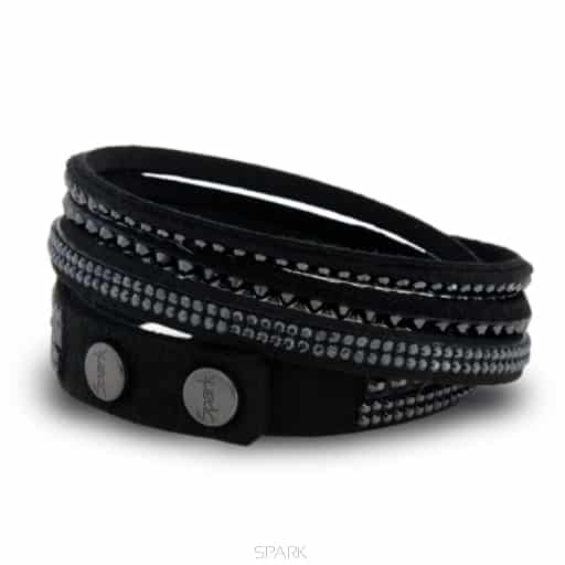 Ces bijoux SPARK noir comportent 4 rangées de cristaux de Swarovski de tailles différentes. Les cristaux de ce bracelet en Swarovski sont montés sur une bande en Alcantara, le célèbre tissutrès haut de gamme si beau, et résistant et surtout terriblement doux à porter. Ces bracelets 2 tours font clairement partis des plus belles créations de SPARK souvent copiées jamais égalées.