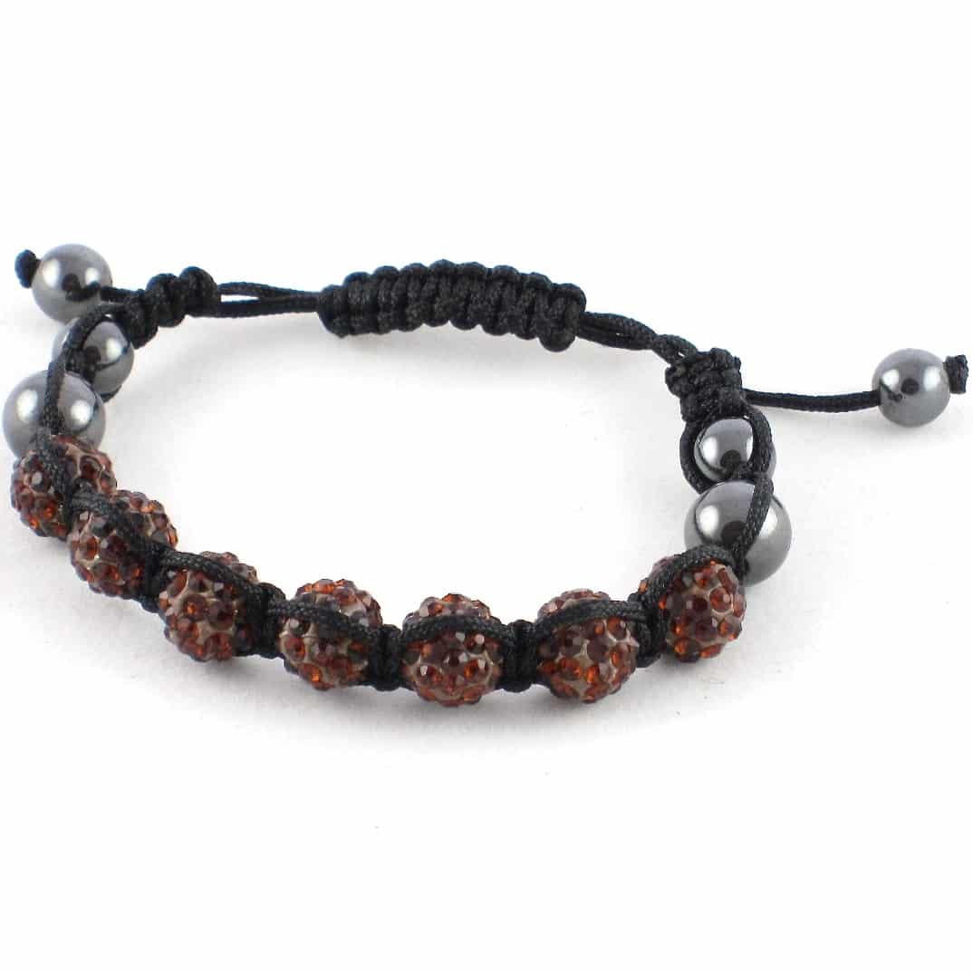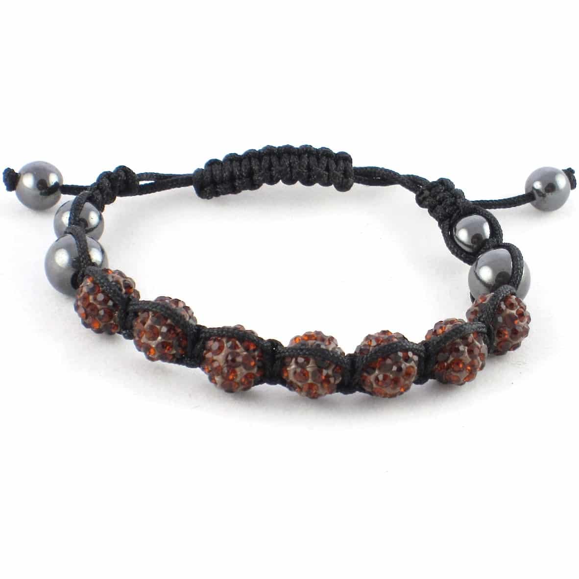 Bijou fantaisie artisanal bracelet en lacette noire perles brillantes orange foncé et perles grises anthracite.