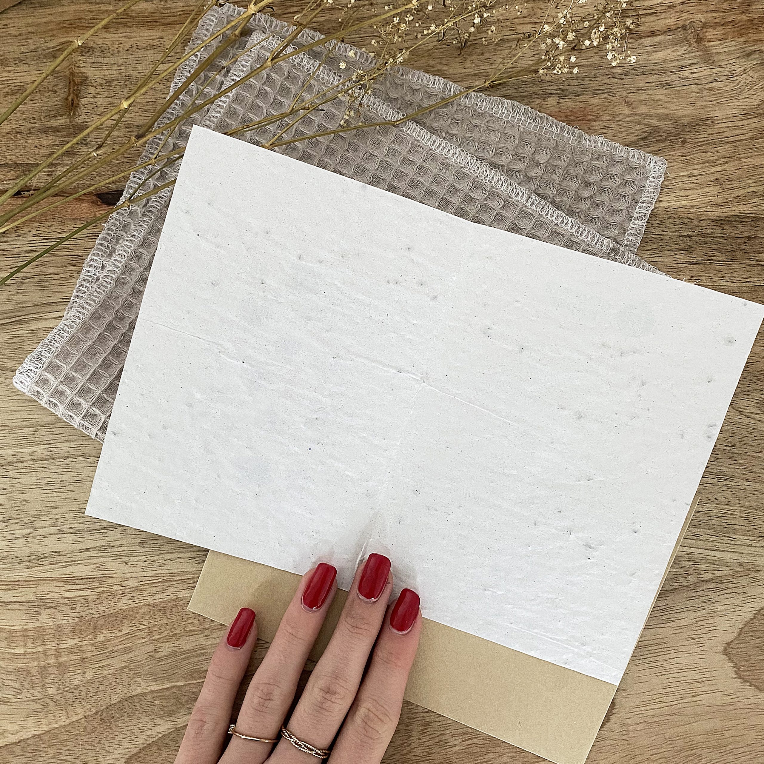 - Enveloppe kraft (Les enveloppes qui les accompagnent sont 100% françaises. Leur empreinte carbone est négative car elles absorbent plus de gaz à effet de serre qu’elles n’en produisent.)
