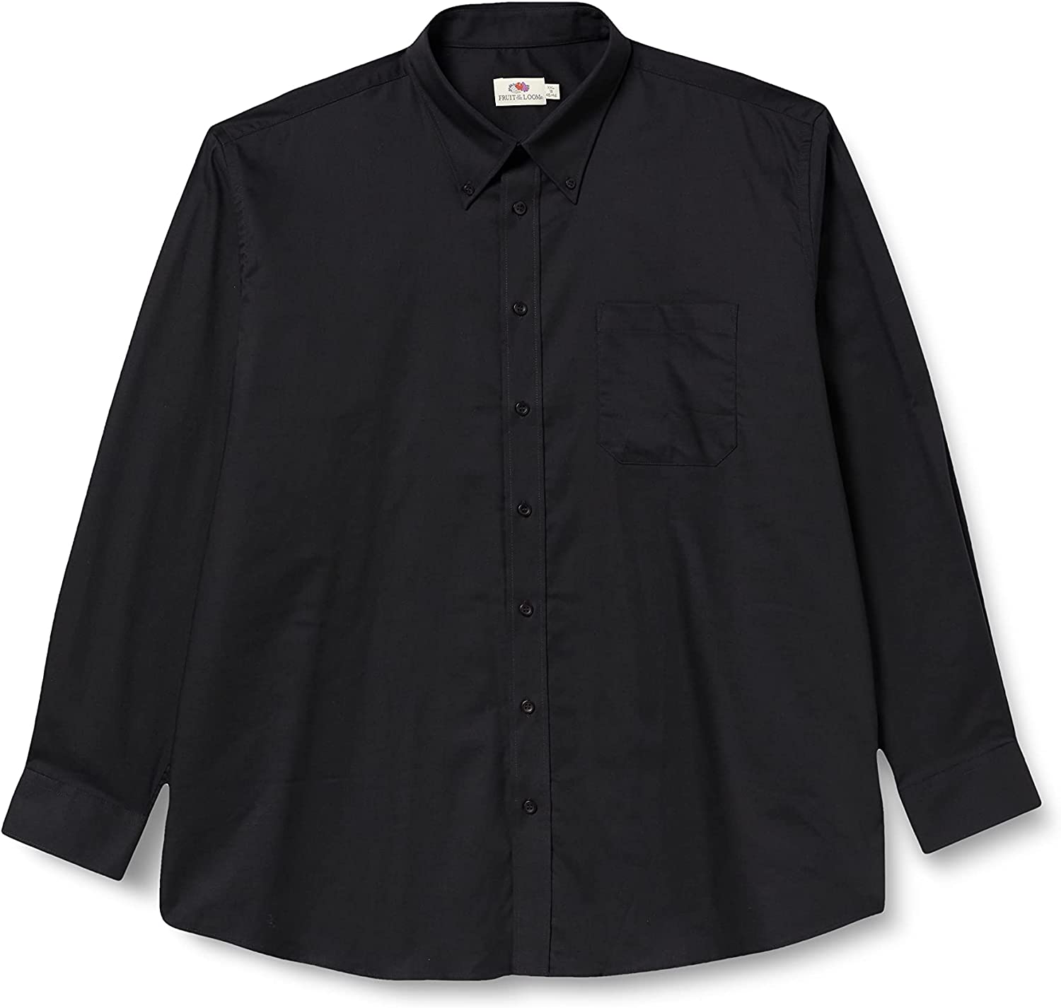 double-fold seams with curved hem, left chest pocket, button-down
