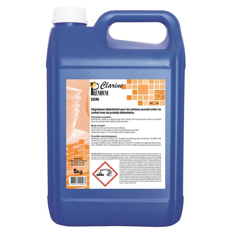 Désinfectant alcalin. Dégraisse et désinfecte les surfaces types plan de travail, matériels, murs, sols, chambres froides…