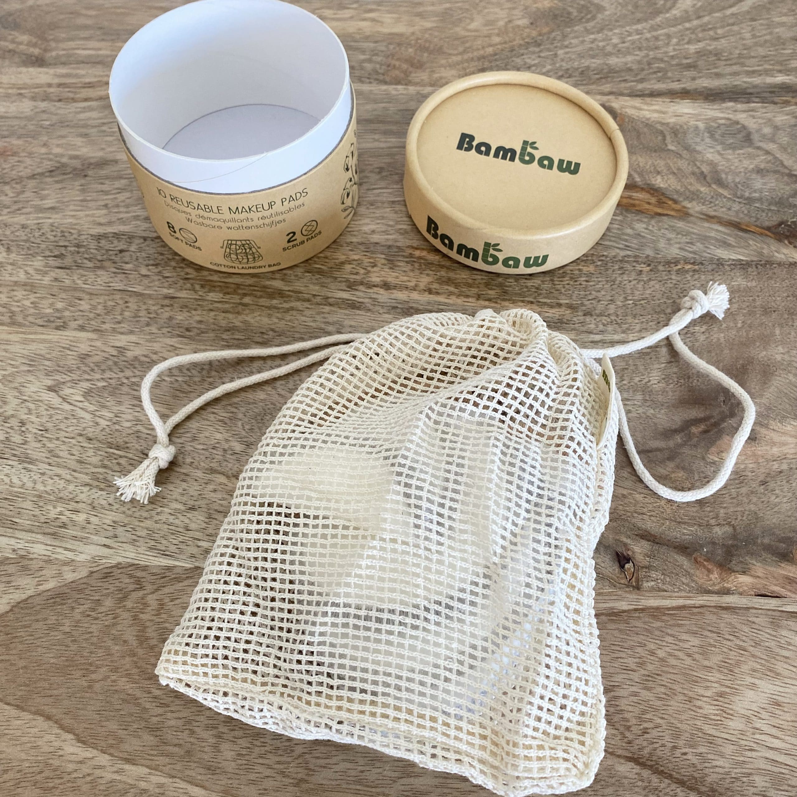 RÉUTILISABLES : les disques démaquillants en bambou sont lavables. Une fois qu’ils sont utilisés, déposez-les dans leur filet de lavage et passez-les en machine à 30°.