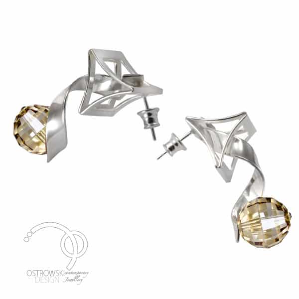 Ostrowski Design est une marque de bijoux reconnu en Pologne et à l’international. Son créateur a remporté de nombreux concours de joaillerie. Entre autre bijoux originaux, Il travaille aussi bien le cristal de Swarovski que l’ambre toujours associés à l’argent massif. Elles font une dimension de 4 x 1,5 cm environ.