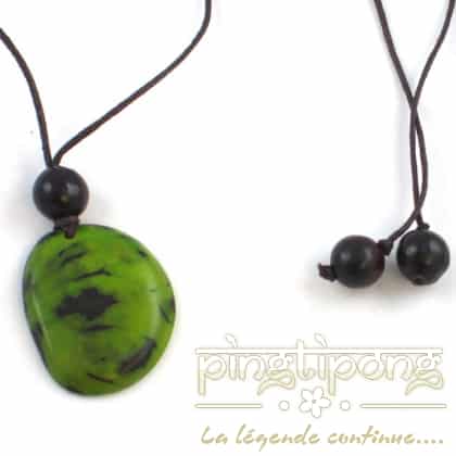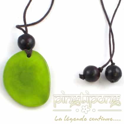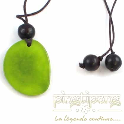 Pingtipong a sélectionné pour vous ces bijoux nature : collier fantaisie en tagua vert pomme et lacette marron de la marque Green-Age.