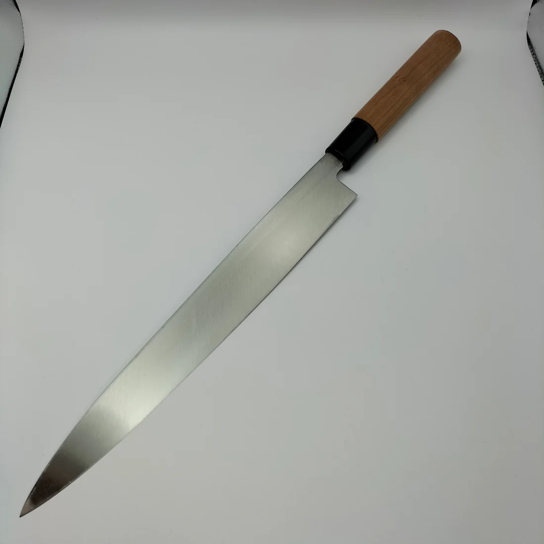 La lame de 270 mm en acier ginsan (semi-inox) est un choix de qualité, offrant la résistance à la corrosion du côté inox tout en conservant la netteté caractéristique d’un acier de haute qualité. Cette combinaison permet des découpes précises et une facilité d’entretien.