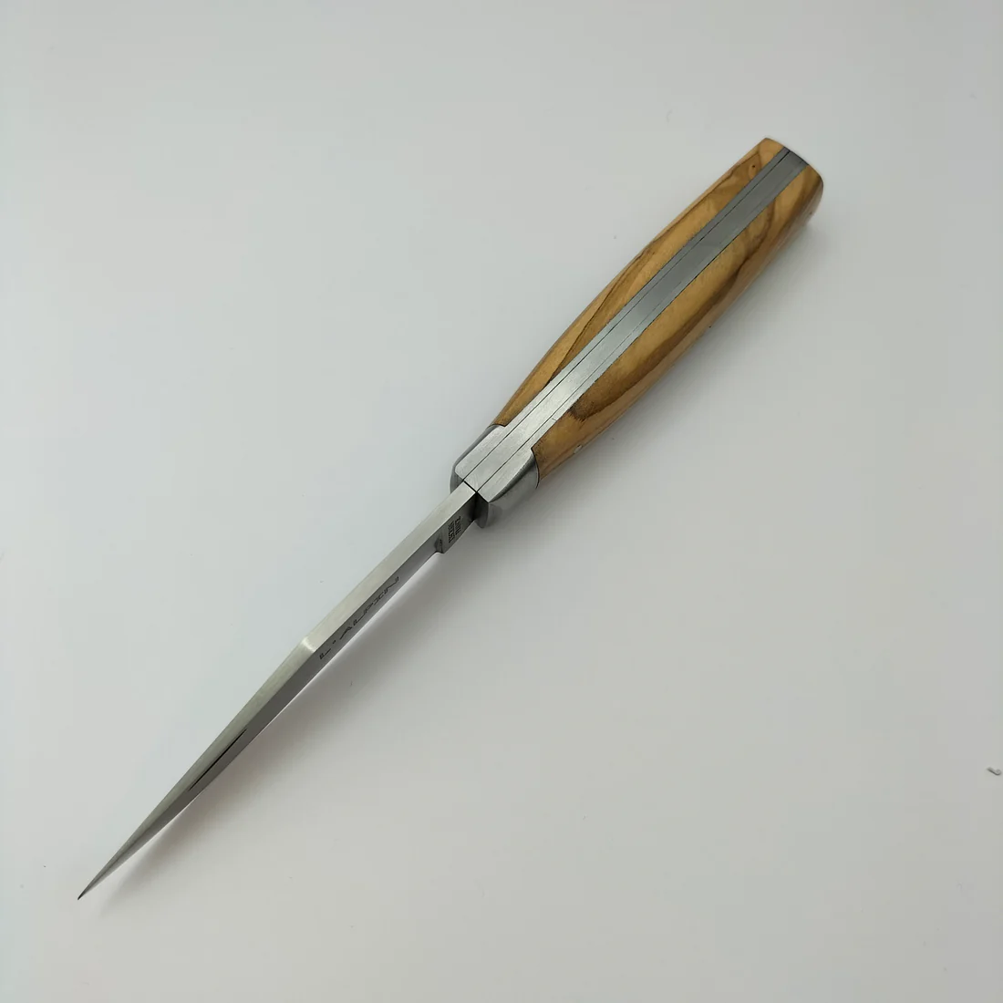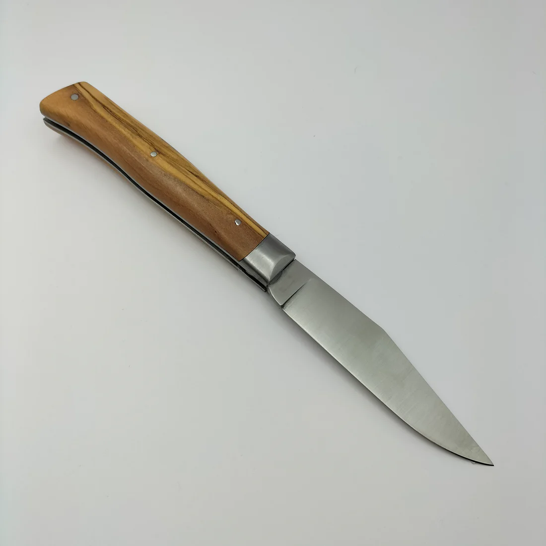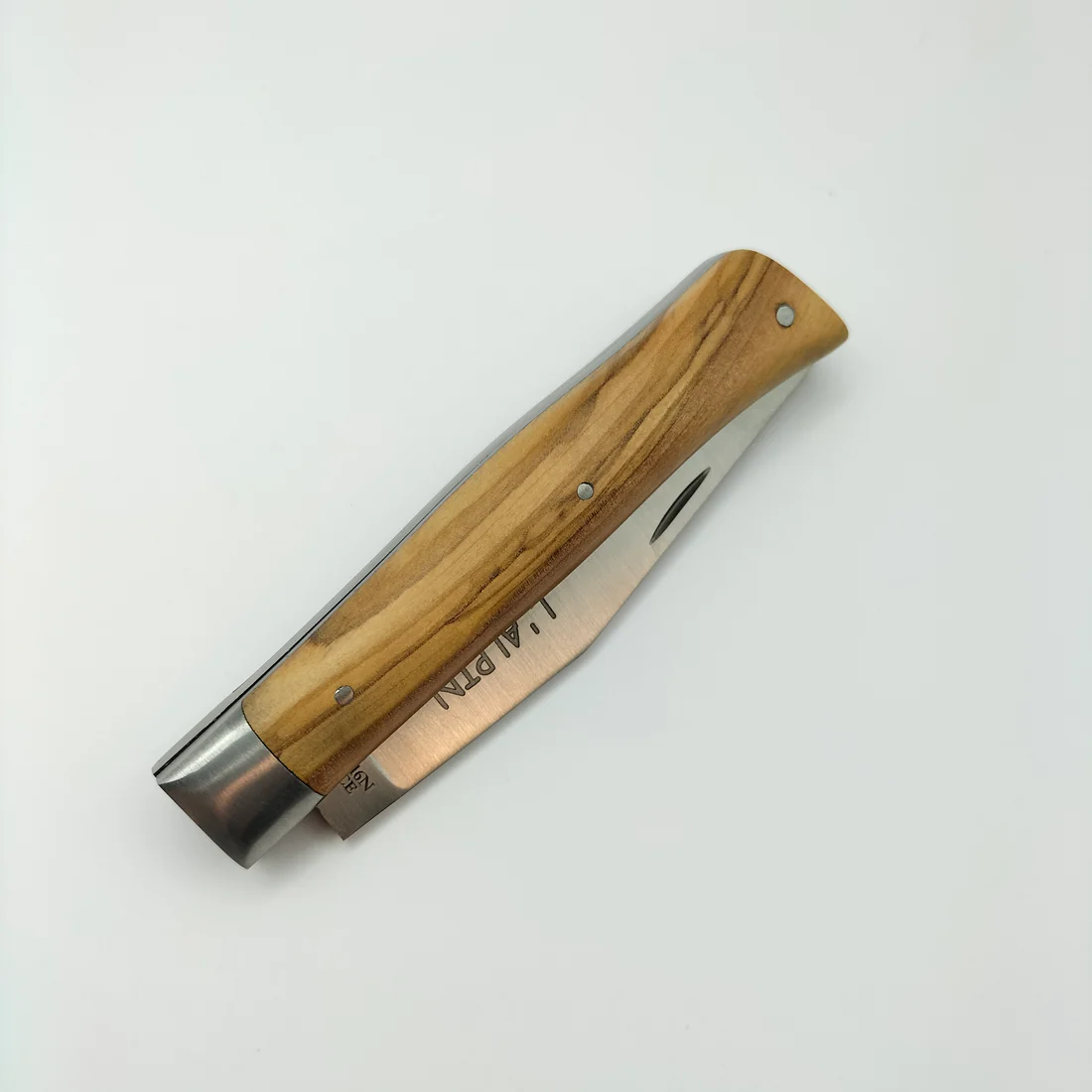 Le manche en olivier ajoute une dimension naturelle et élégante au couteau « L’alpin ». L’olivier, avec sa texture caractéristique et sa couleur chaleureuse, offre une prise en main agréable et confère au couteau une esthétique intemporelle.