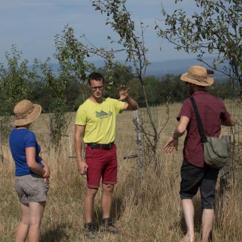 Pendant la journée vous préparez le matériel et vous découvrez le verger diversifié d’Hubert avec ses différentes espèces d’arbres fruitiers.