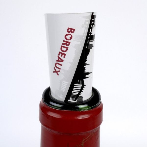 Le Drop Stop Bordeaux Skyline© avec la silhouette de Bordeaux permettra de servir le vin tout en délicatesse. De couleur bordeaux, noir (celui-ci) ou blanc , ce stop-goutte apportera une touche élégante et moderne au service du vin.