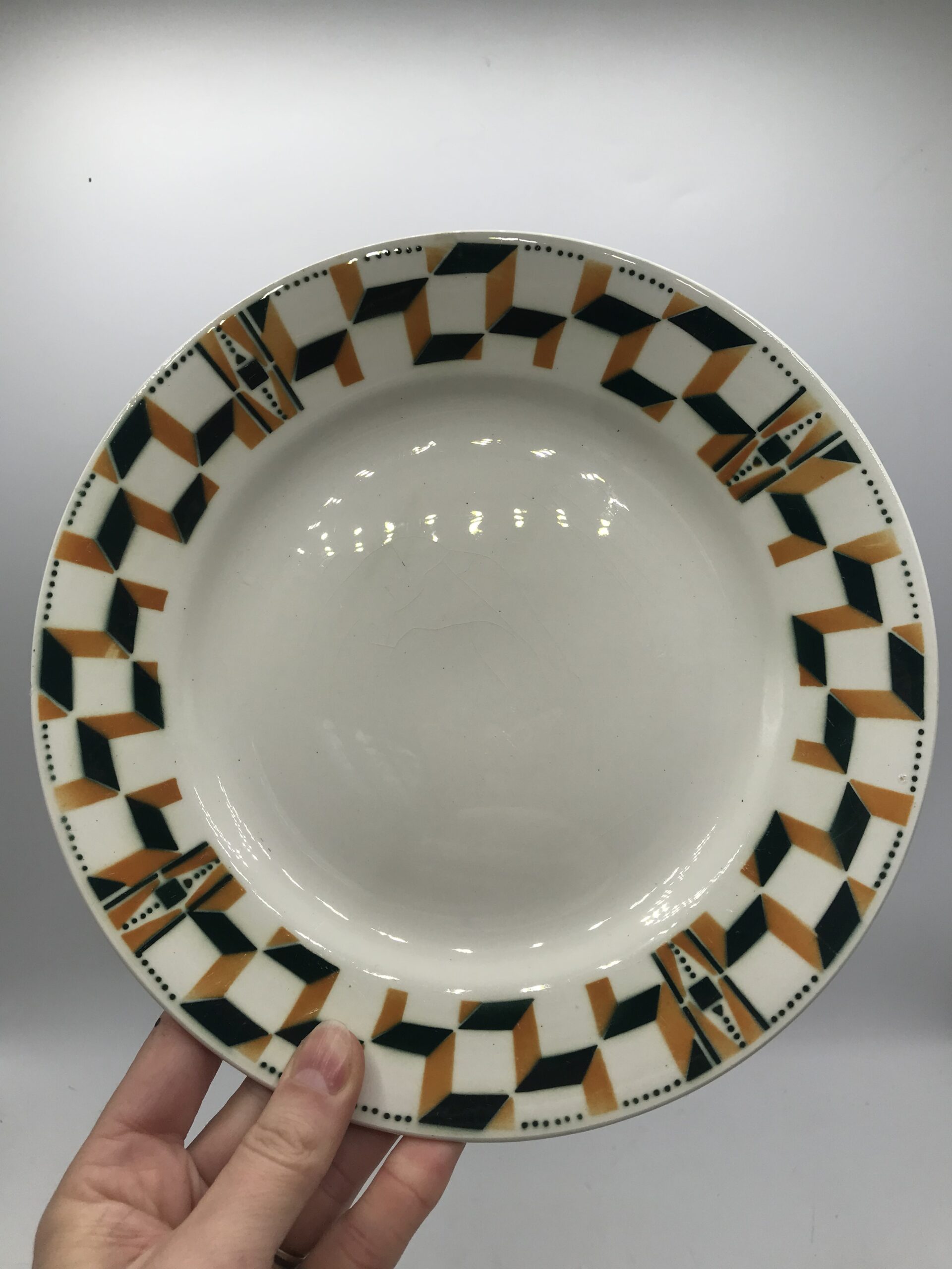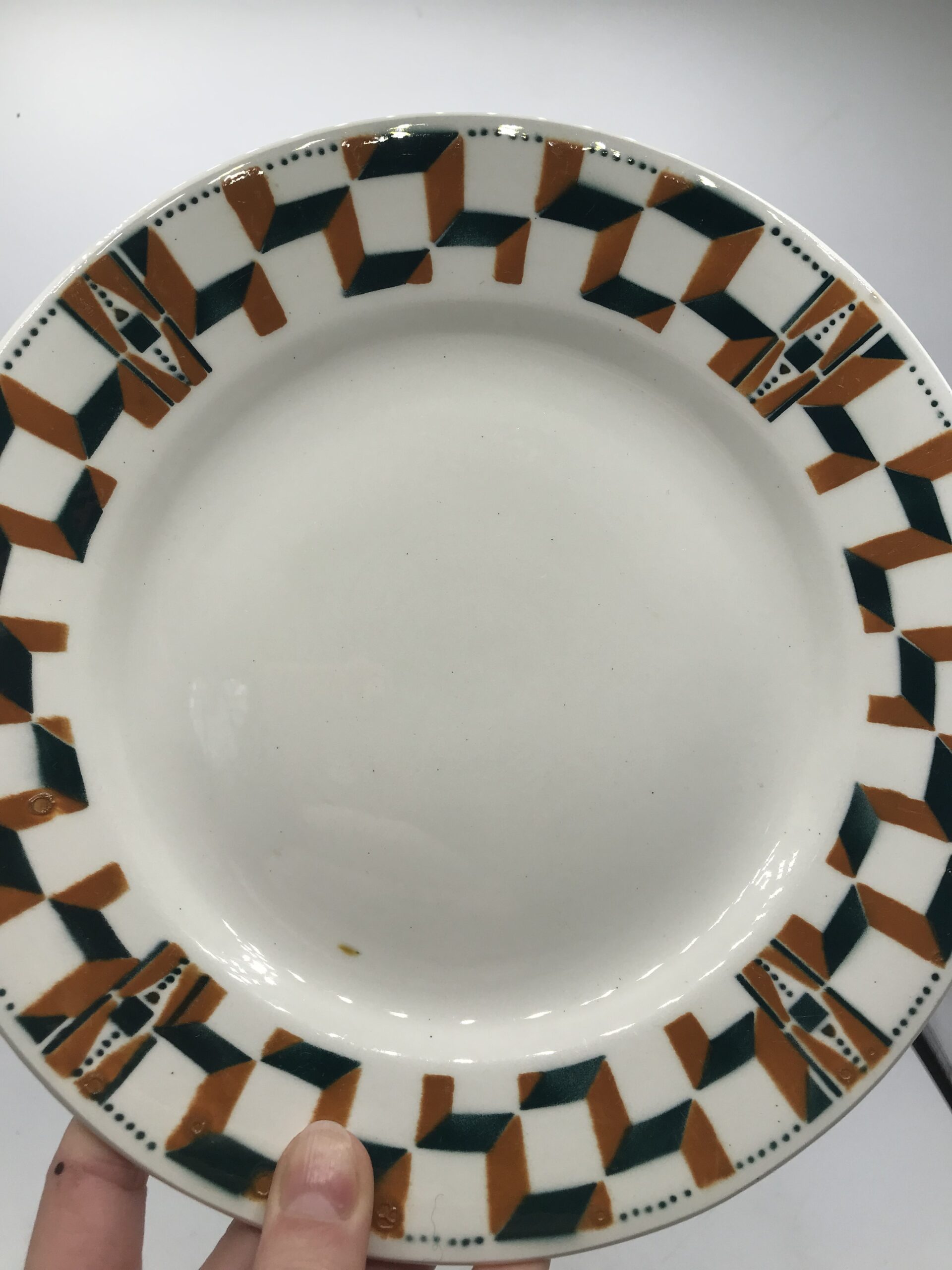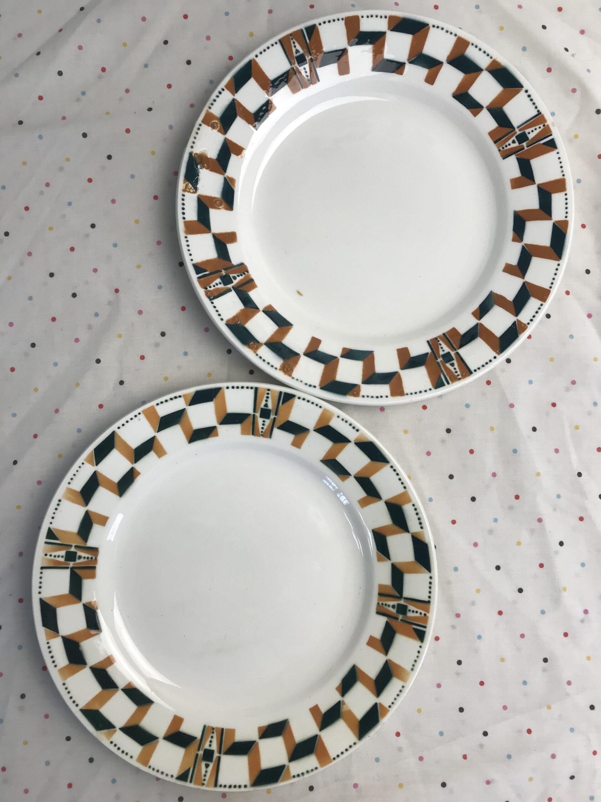 Alerte pépite !!!! Duo d’assiettes St Amand collection « 655 ». Les assiettes ont un diamètre de 22,5 cm pour une hauteur de 2,5 cm. Pour ceux qui veulent commencer une collection de vaisselle vintage, c’est la bonne occasion avec ce duo. Ou sinon pour les connaisseurs qui complètent une collection. Ces deux assiettes sont assez rares, elles viennent de la collection « 655 » de chez St Amand. Elles ont un visuel psychédélique et géométrique de couleur vert sapin et orange vintage. Vous allez les adorer. A noter des traces d’usures du au temps (cf photos).