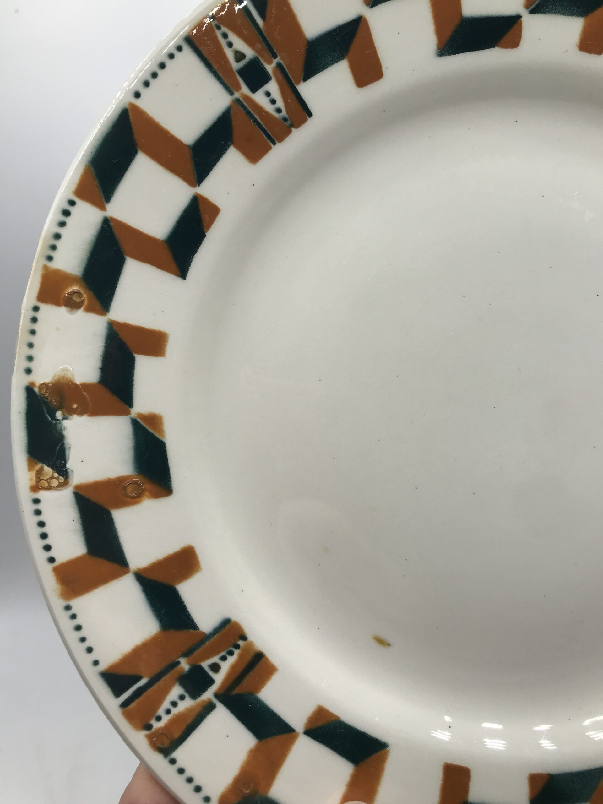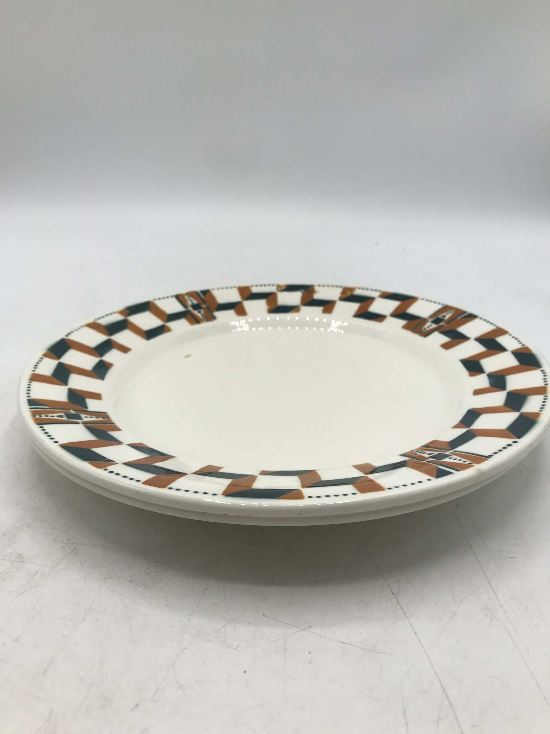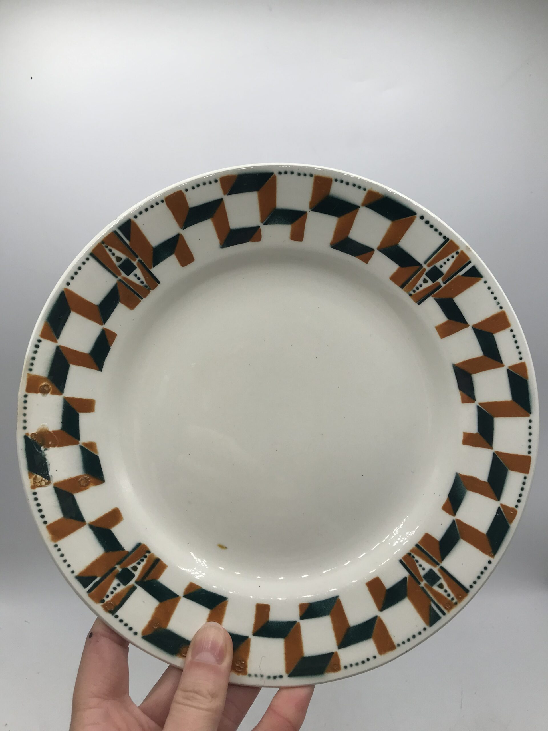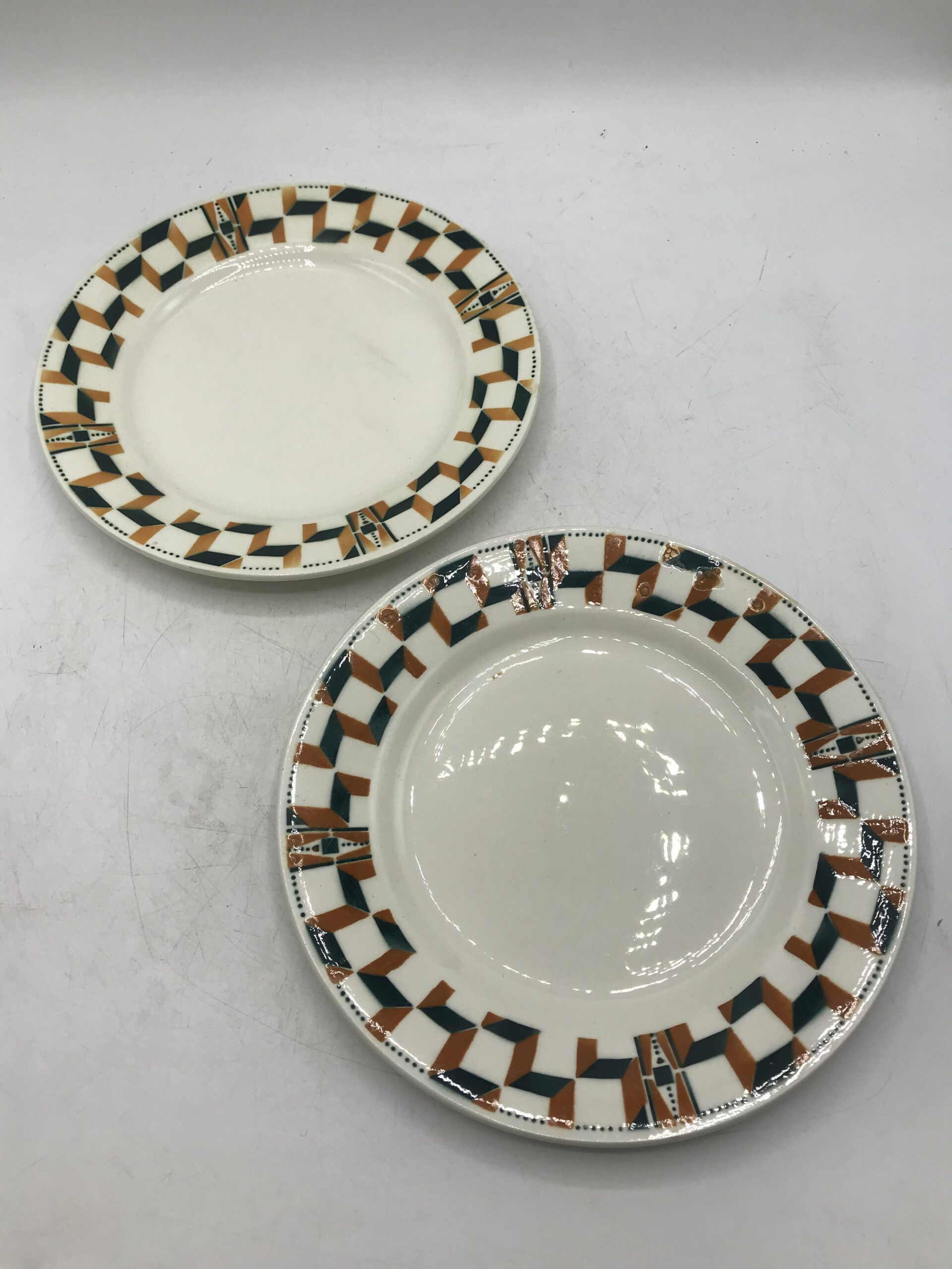 Alerte pépite !!!! Duo d’assiettes St Amand collection « 655 ». Les assiettes ont un diamètre de 22,5 cm pour une hauteur de 2,5 cm. Pour ceux qui veulent commencer une collection de vaisselle vintage, c’est la bonne occasion avec ce duo. Ou sinon pour les connaisseurs qui complètent une collection. Ces deux assiettes sont assez rares, elles viennent de la collection « 655 » de chez St Amand. Elles ont un visuel psychédélique et géométrique de couleur vert sapin et orange vintage. Vous allez les adorer. A noter des traces d’usures du au temps (cf photos).