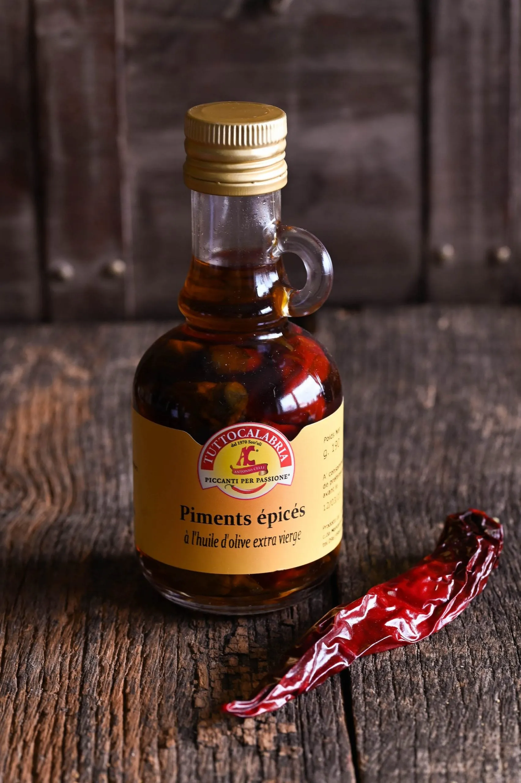 Huile d’olive extra vierge au piment (190g) de Tutto Calabria.