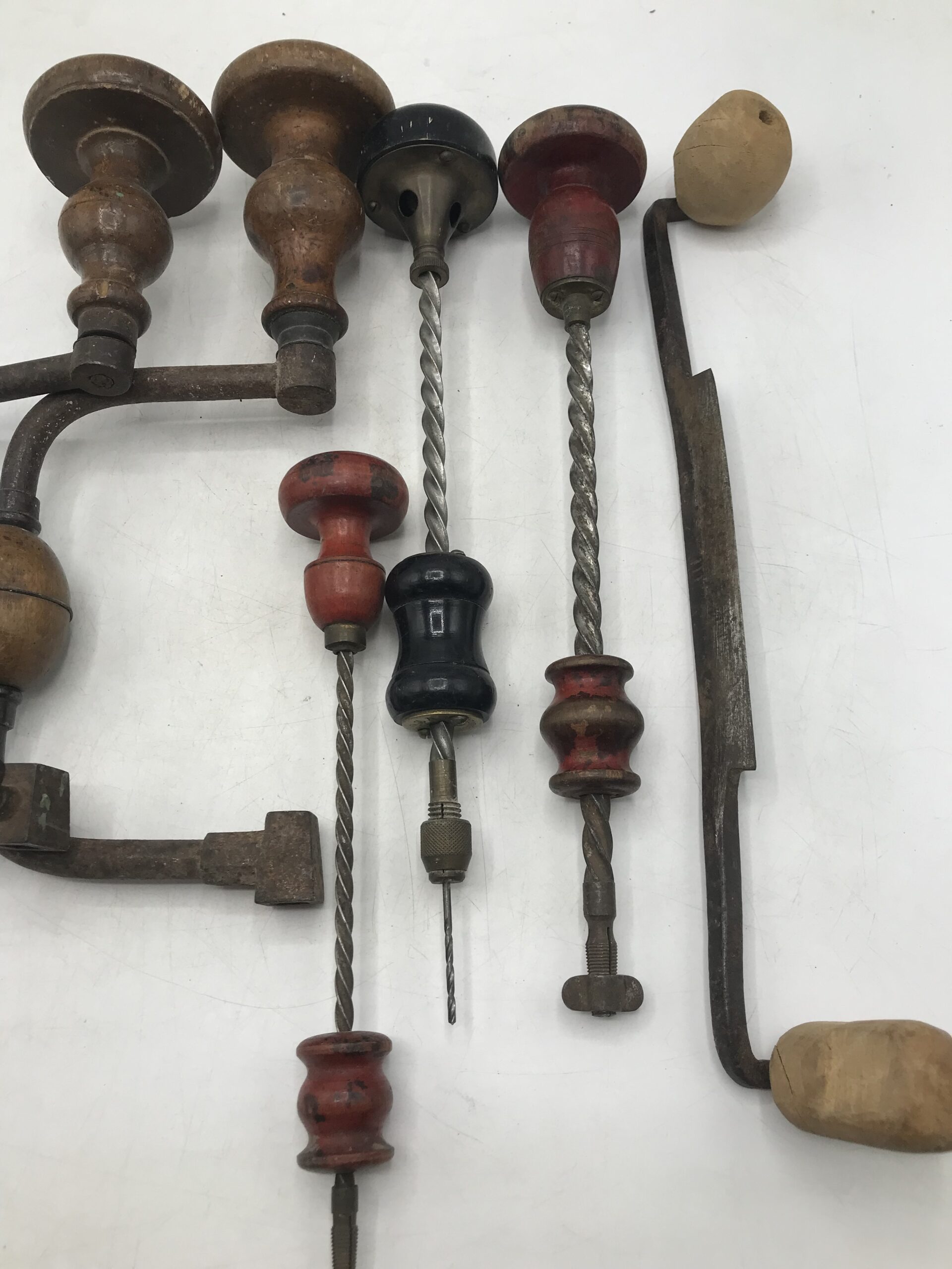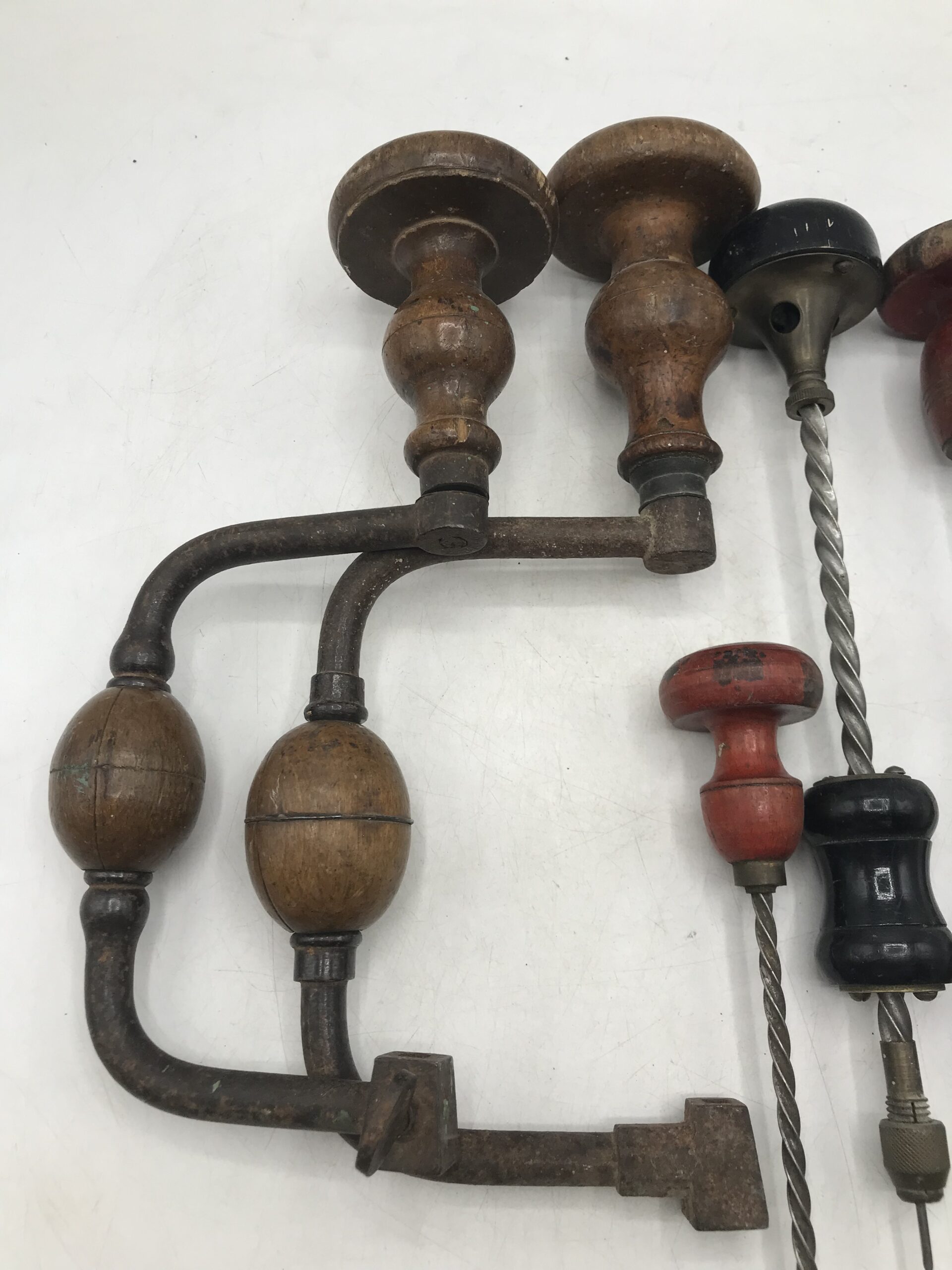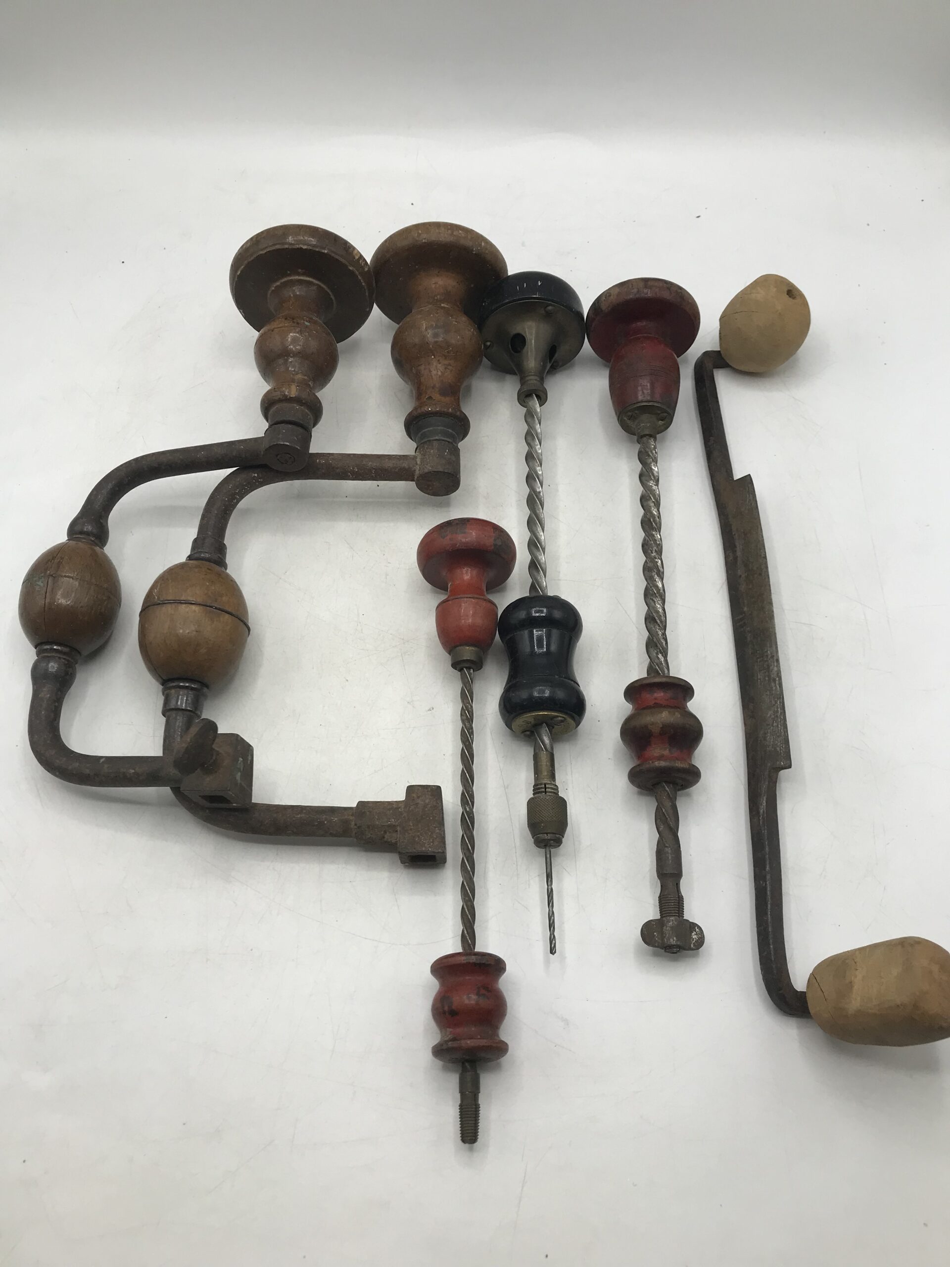 Lot de 6 outils anciens. Ce lot est composé d’outils anciens, les outils portent les marques du temps mais peuvent encore être remis en service (cf photos). Nous avons donc 3 anciennes perceuses à vrille, une de longueur 25 cm , une de 32 cm et une de 29 cm avec une mèche. Elles sont accompagnée de deux vilebrequins manuels ancien matériel agricole. Et pour finir cet ensemble un plane de menuisier. Amis bricoleur venez y jeter un œil cela pourrait vous intéresser. De jolis objets qui méritent une belle seconde vie.