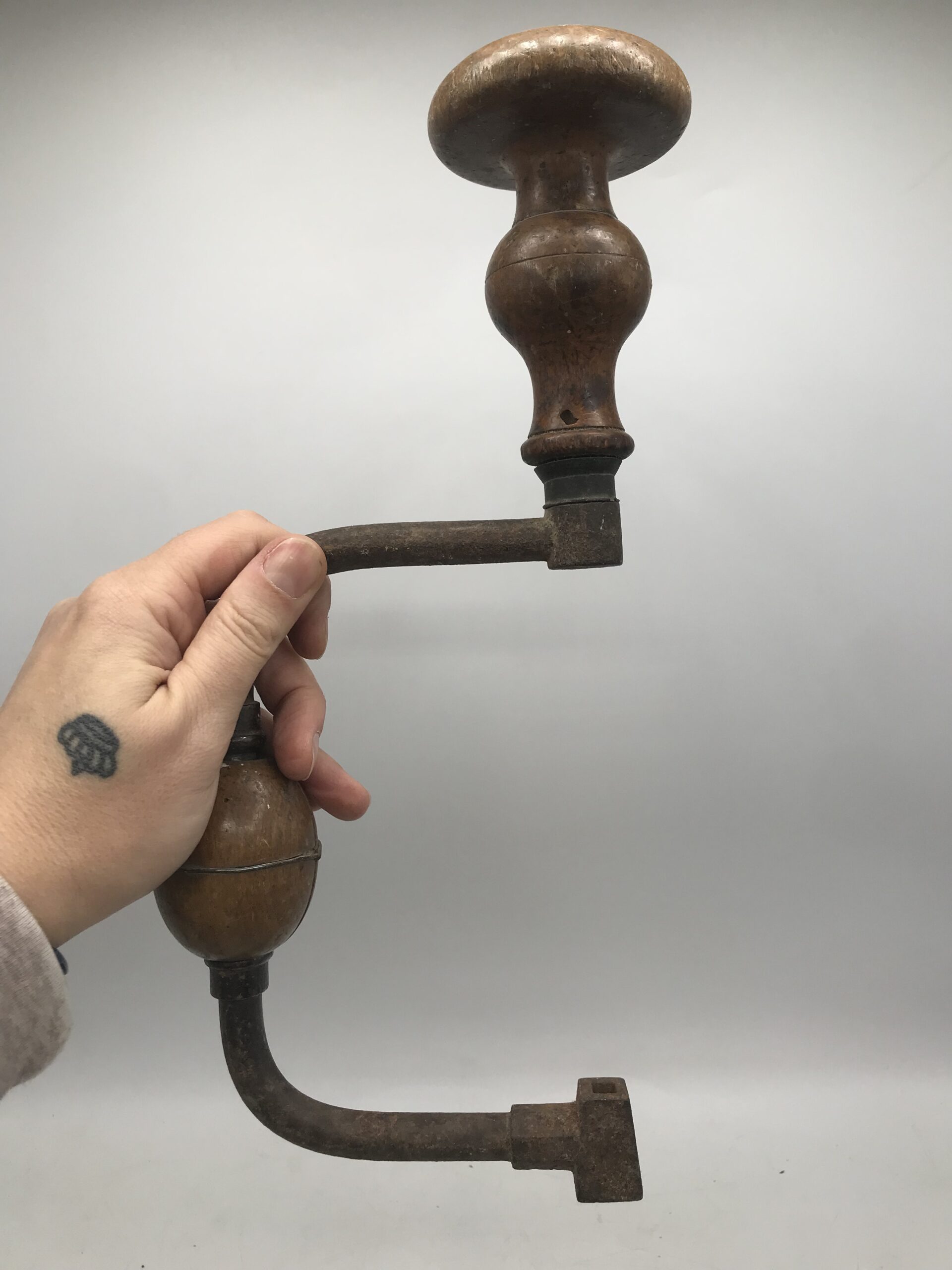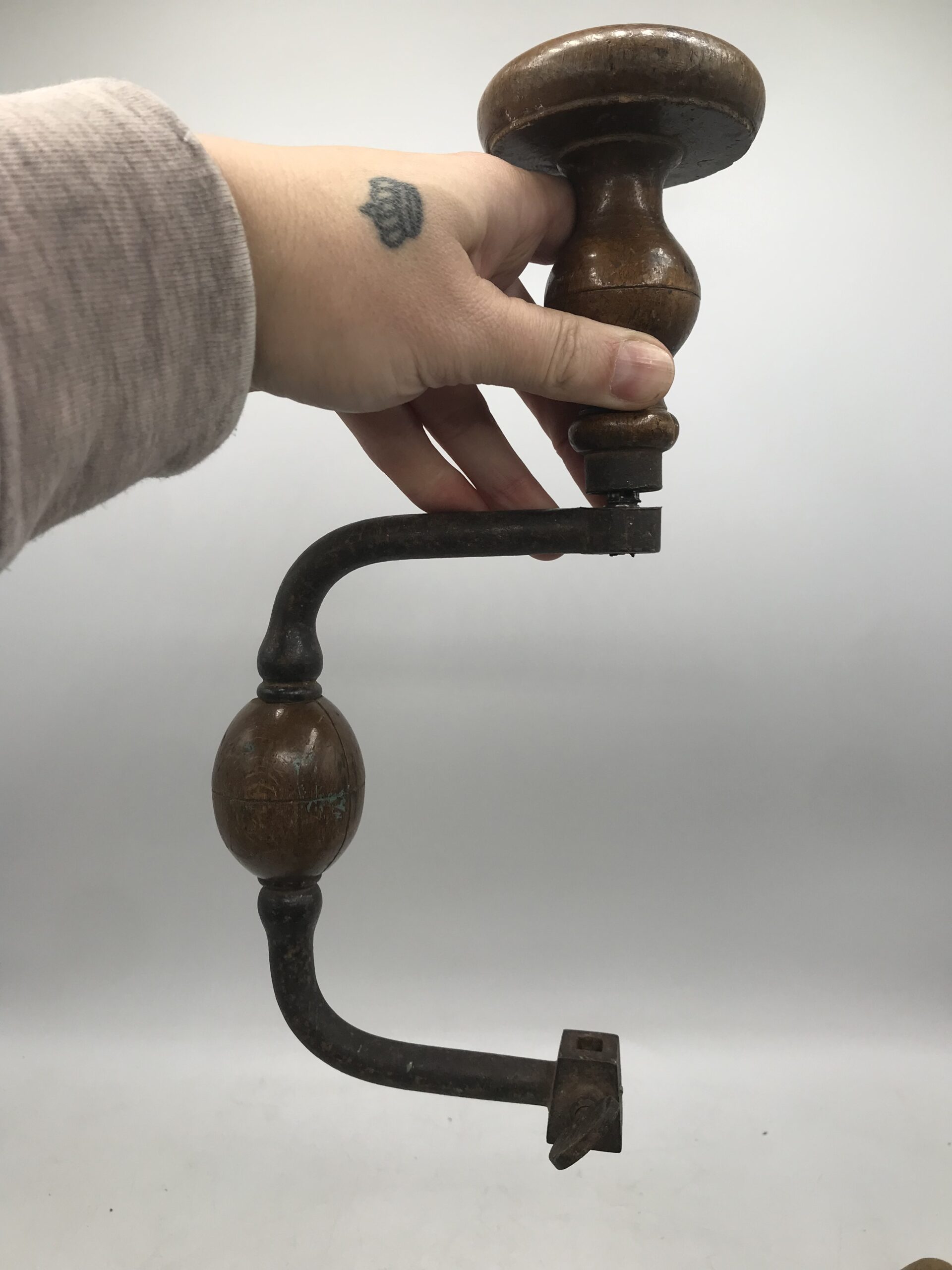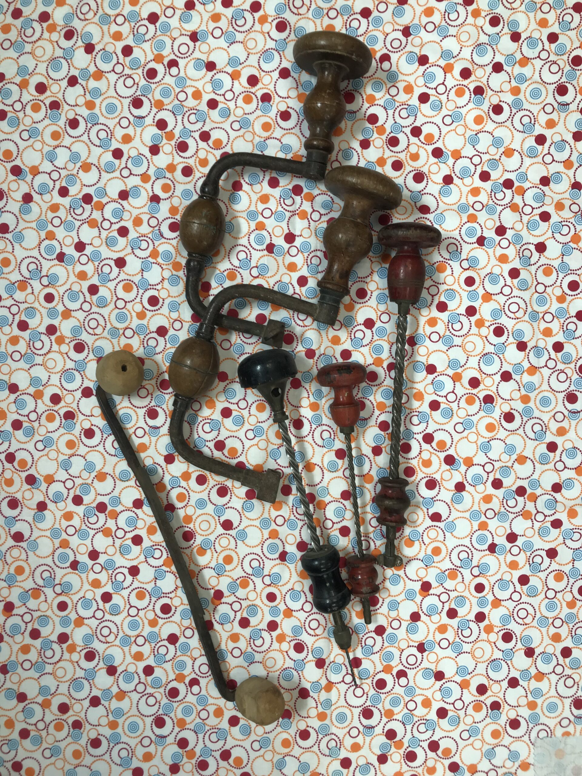 Lot de 6 outils anciens. Ce lot est composé d’outils anciens, les outils portent les marques du temps mais peuvent encore être remis en service (cf photos). Nous avons donc 3 anciennes perceuses à vrille, une de longueur 25 cm , une de 32 cm et une de 29 cm avec une mèche. Elles sont accompagnée de deux vilebrequins manuels ancien matériel agricole. Et pour finir cet ensemble un plane de menuisier. Amis bricoleur venez y jeter un œil cela pourrait vous intéresser. De jolis objets qui méritent une belle seconde vie.