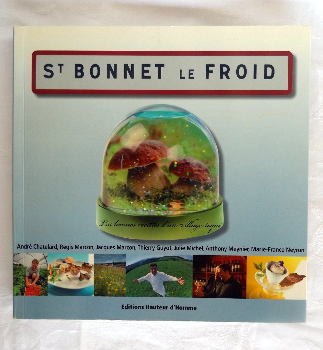 Les recettes de restaurateurs vivant à Saint-Bonnet-le-Froid dans le département de la Haute-Loire, région Auvergne – Rhône-Alpes. Le chef de file de ce village toqué est bien entendu Régis Marcon, multi-étoilés au guide Michelin. Ce livre nous présente, outre des recettes, les producteurs locaux et leurs produits. Un pays de montagne où il fait bon vivre et aussi bien manger ! Très bon état      35€