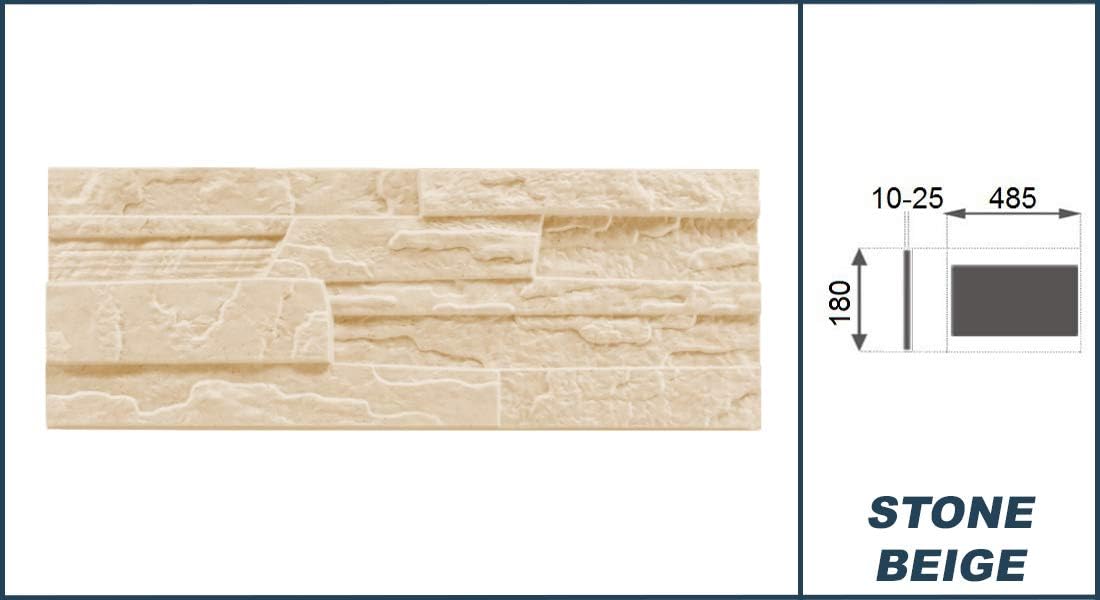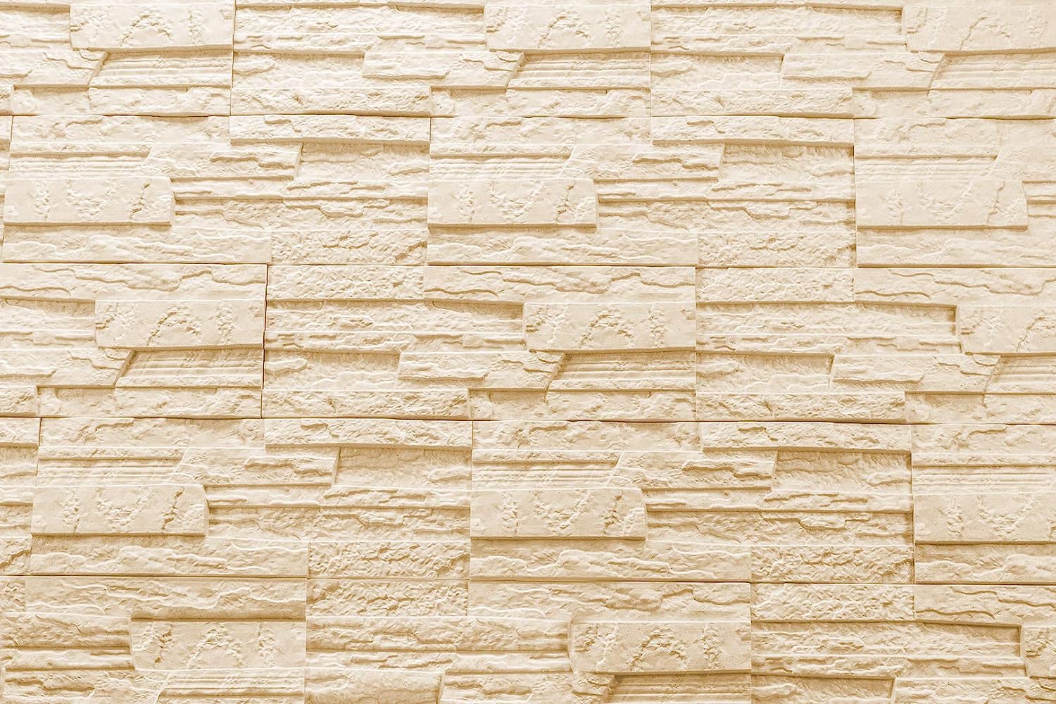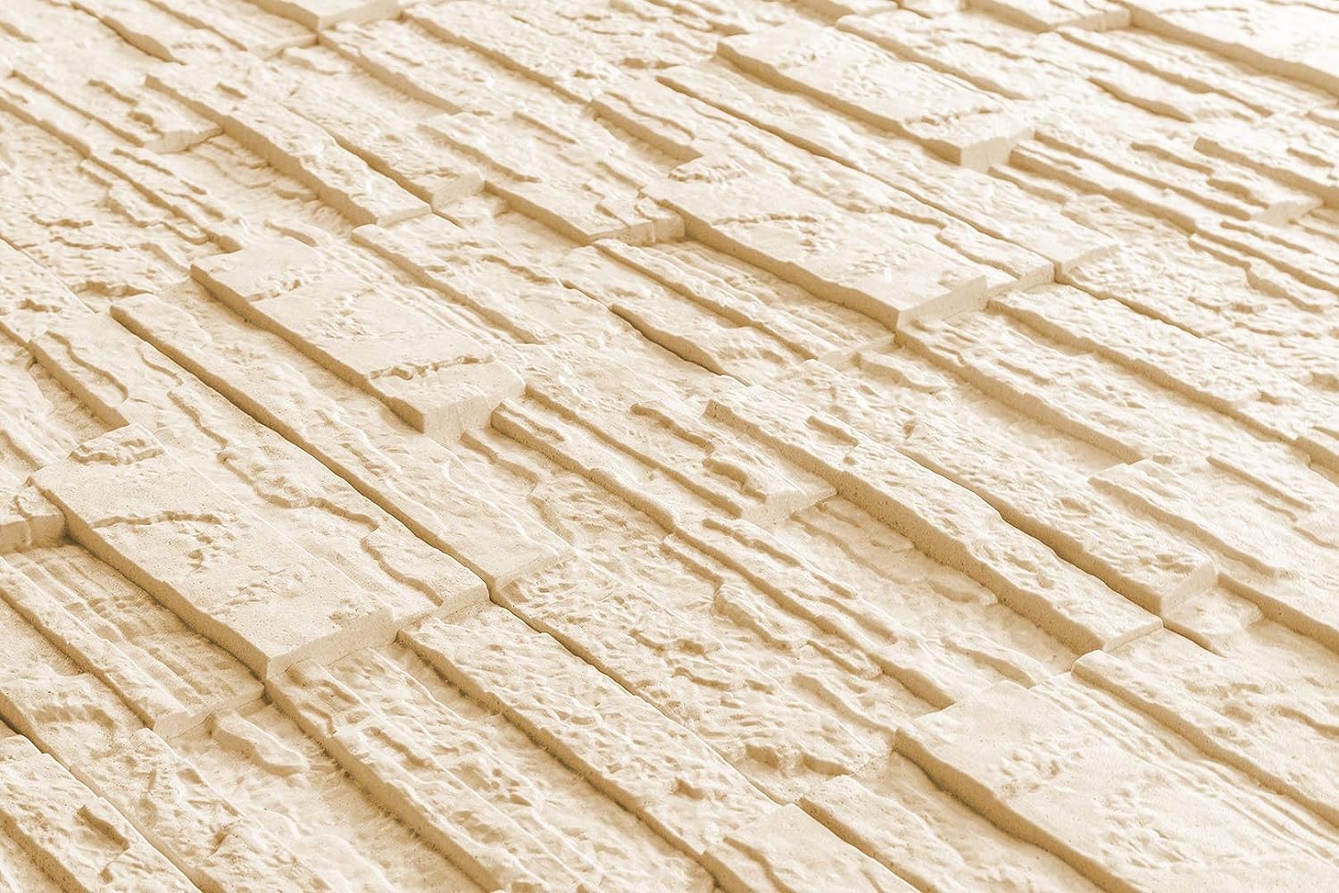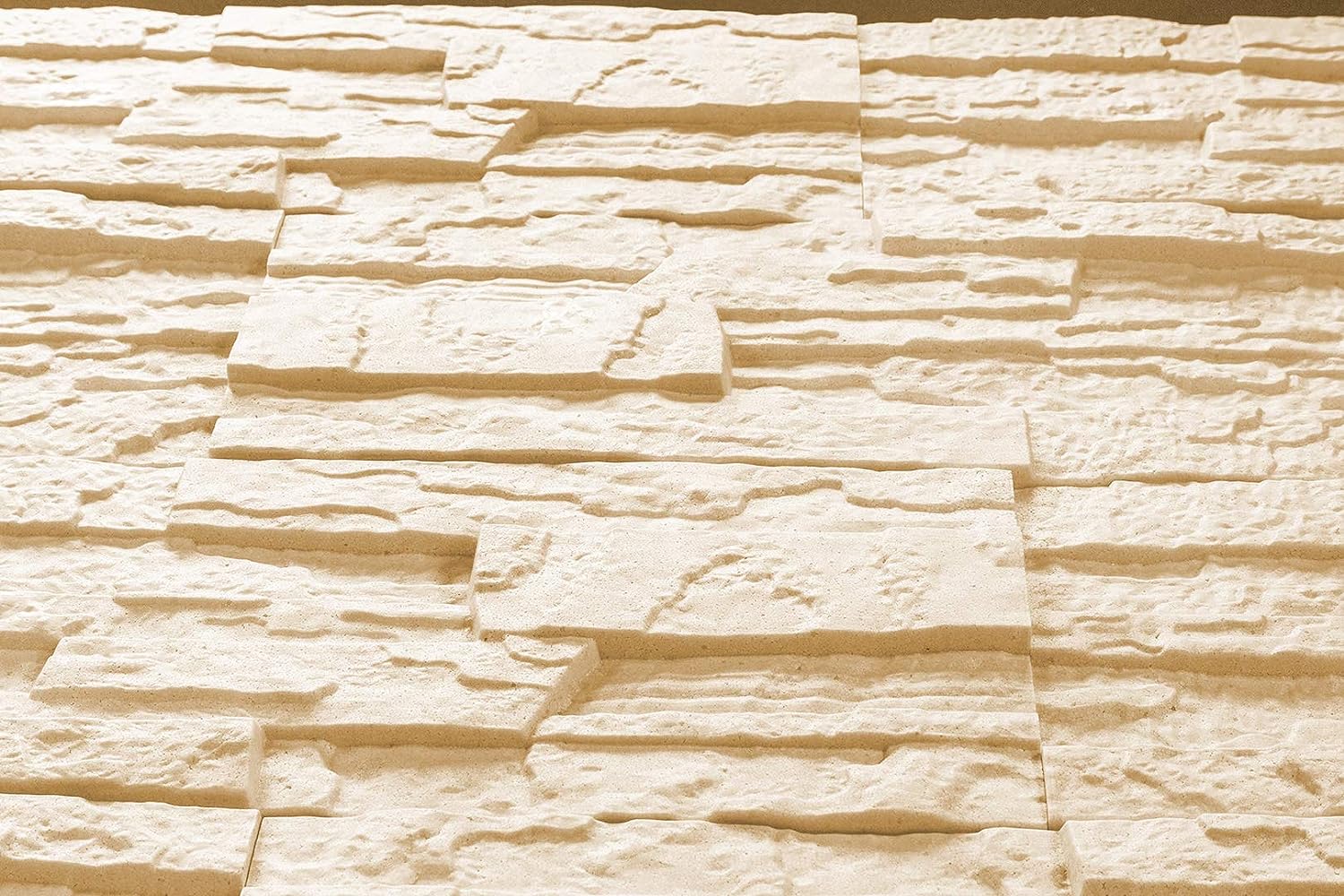 panneau mural en pierre beige, dimensions par plaque : 485 x 180 mm, épaisseur env. 10-25 mm, densité 80 kg/m3