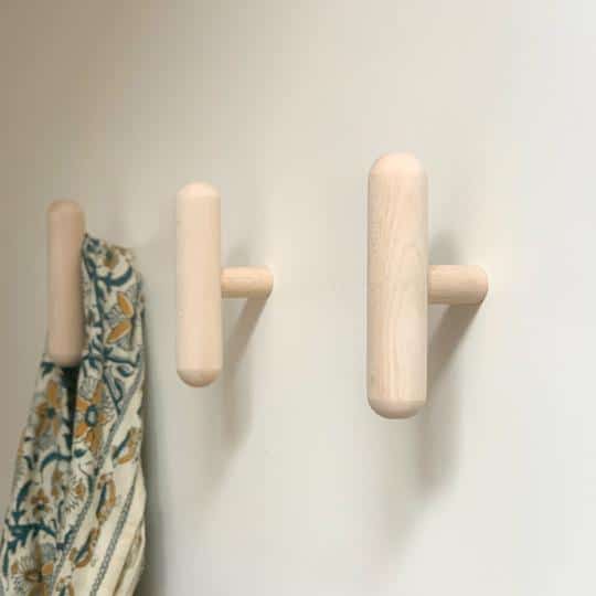 Patères en bois de Hêtre n’ayant subi aucun traitement. Le bois naturel est chaleureux et s’harmonise dans tout type d’intérieurs, elles seront donc parfaites dans une entrée, une chambre ou un salon.