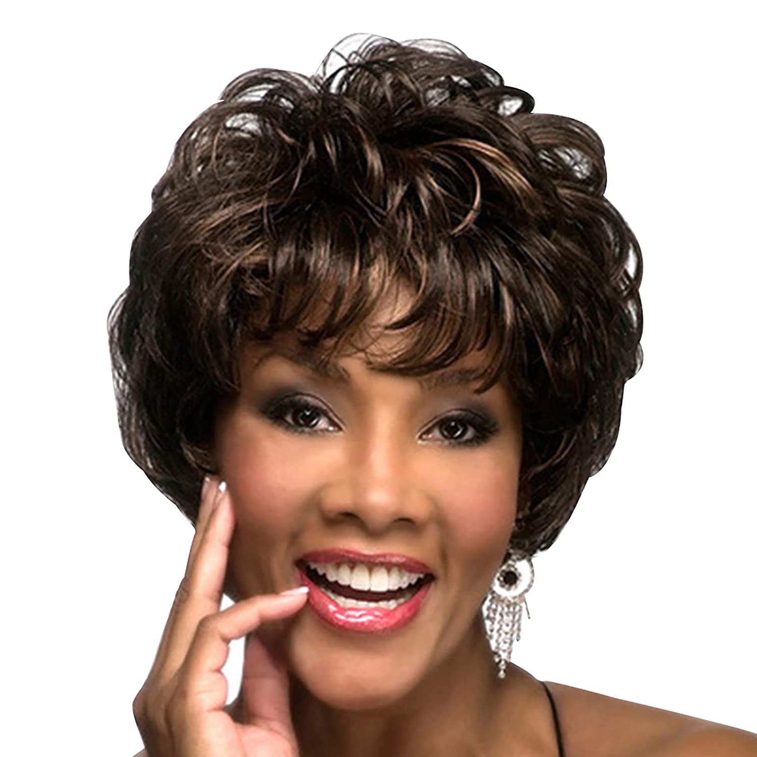 FEOYA – Coupe de Cheveux Femme Fille Rose Ondulé avec Franges, Perruques Cheveux Synthétiques, Cosplay Fête ou Usage Quotidien, Fibre Chimique, Résistant à la Chaleur, Naturel, Doux, Noir Brun.