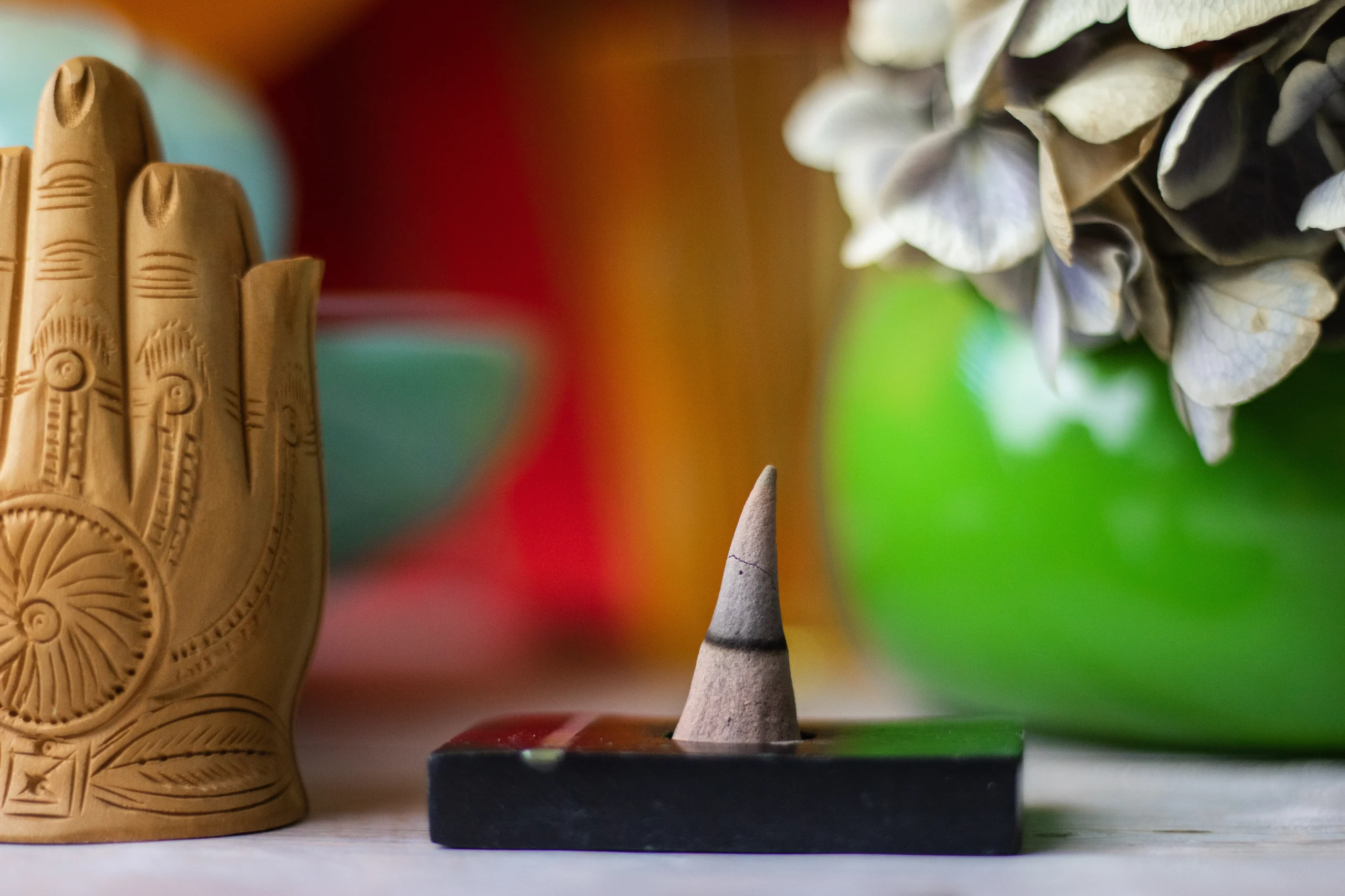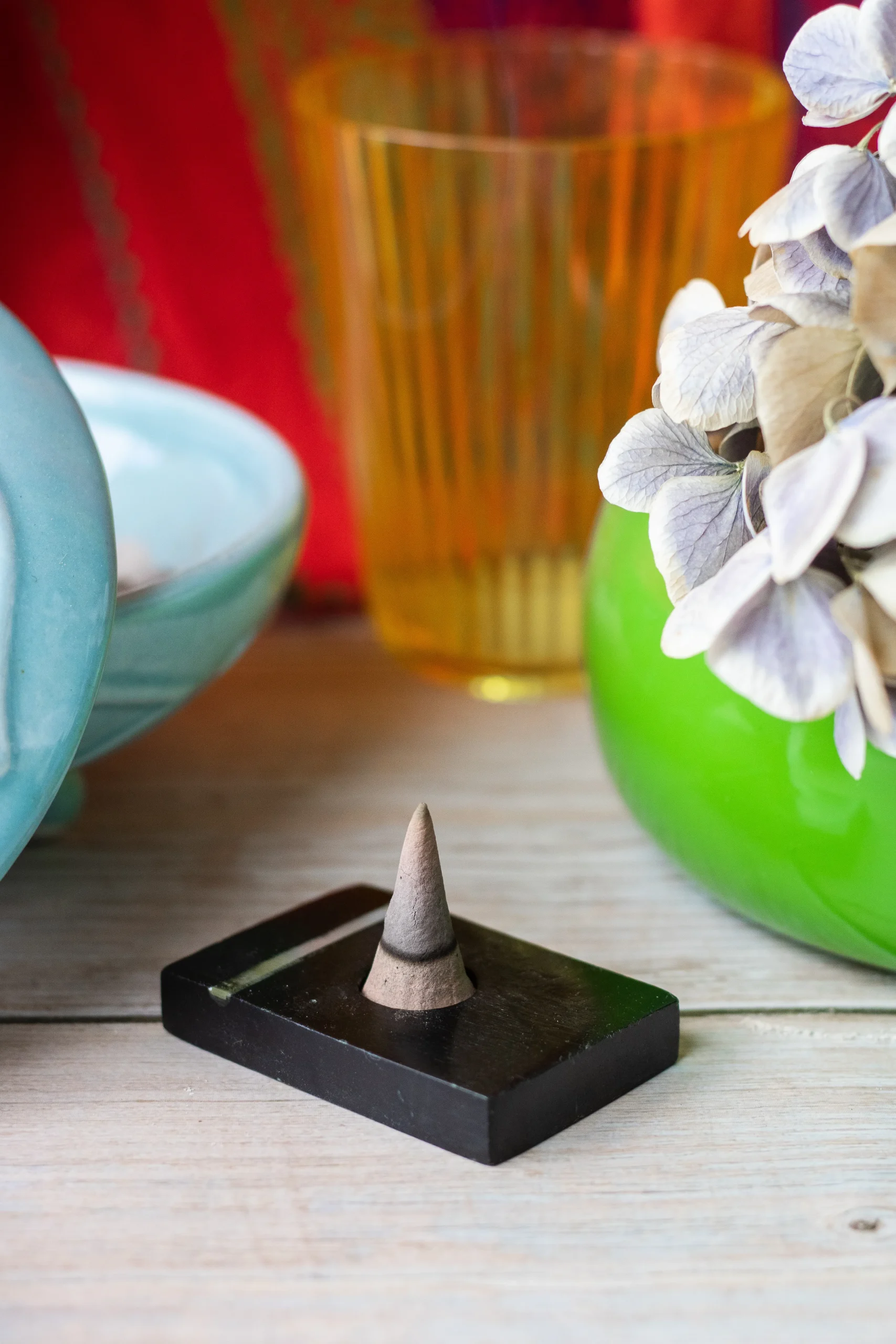Placez votre cône d’encens sur l’emplacement prévu à cet effet puis allumez-le. Vous pouvez aussi piquer votre bâtonnet d’encens dans le trou prévu à cet effet.