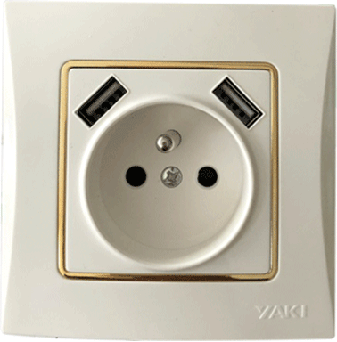 PRISE ELECTRIQUE ENCASTRE 2Port USB+T BLANC-DORE YAKI