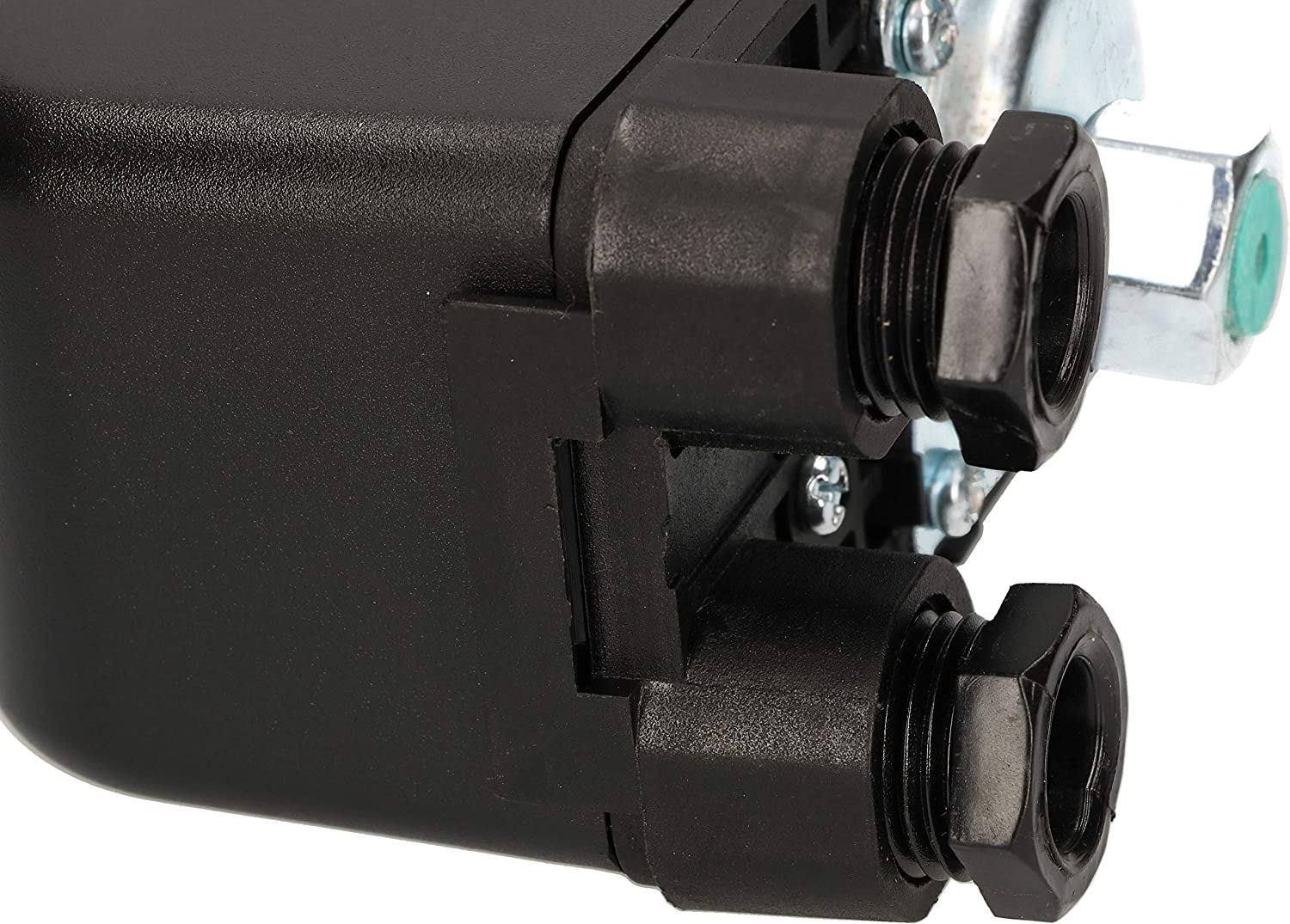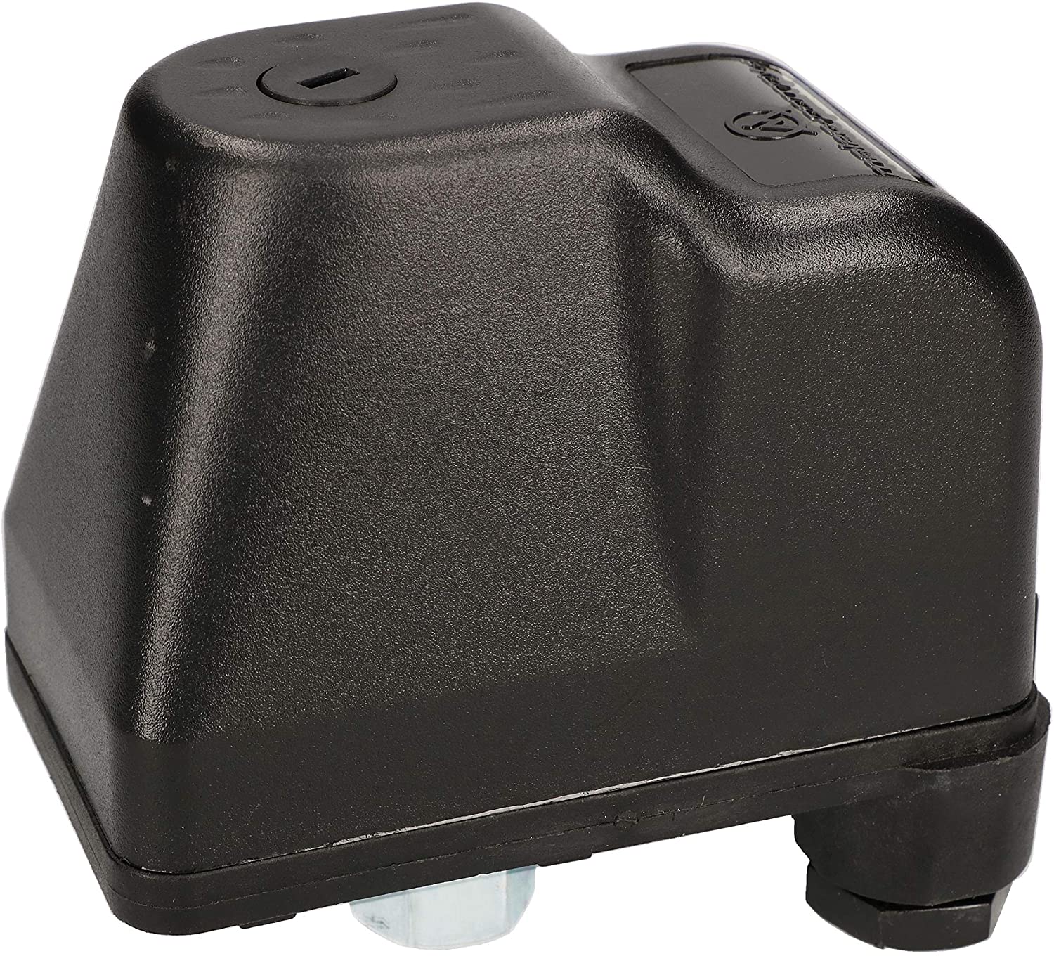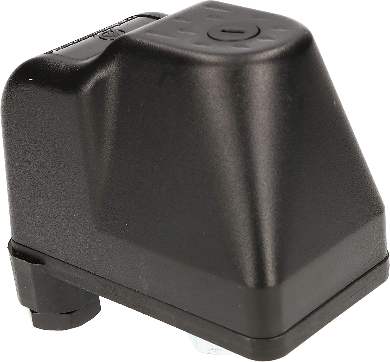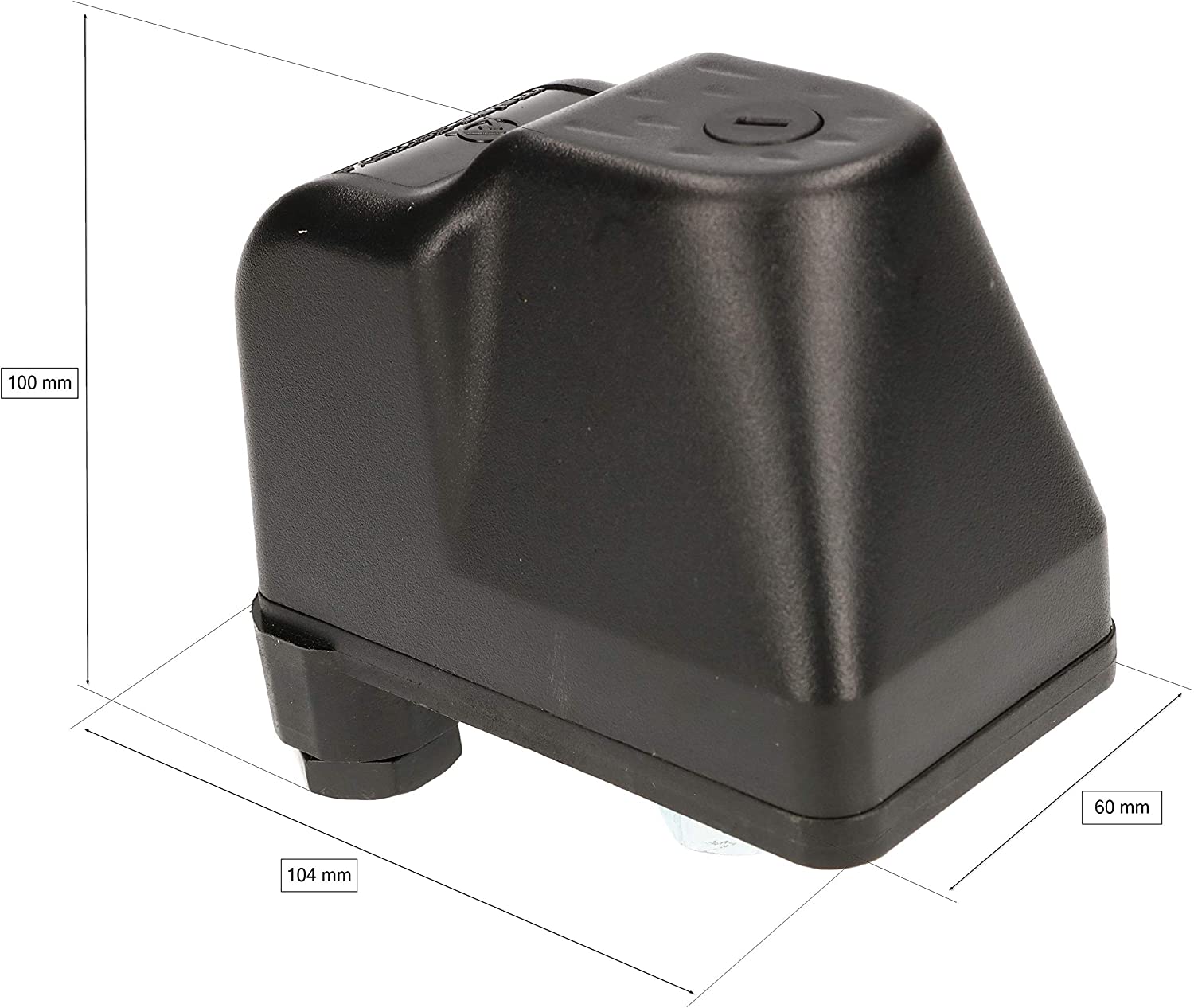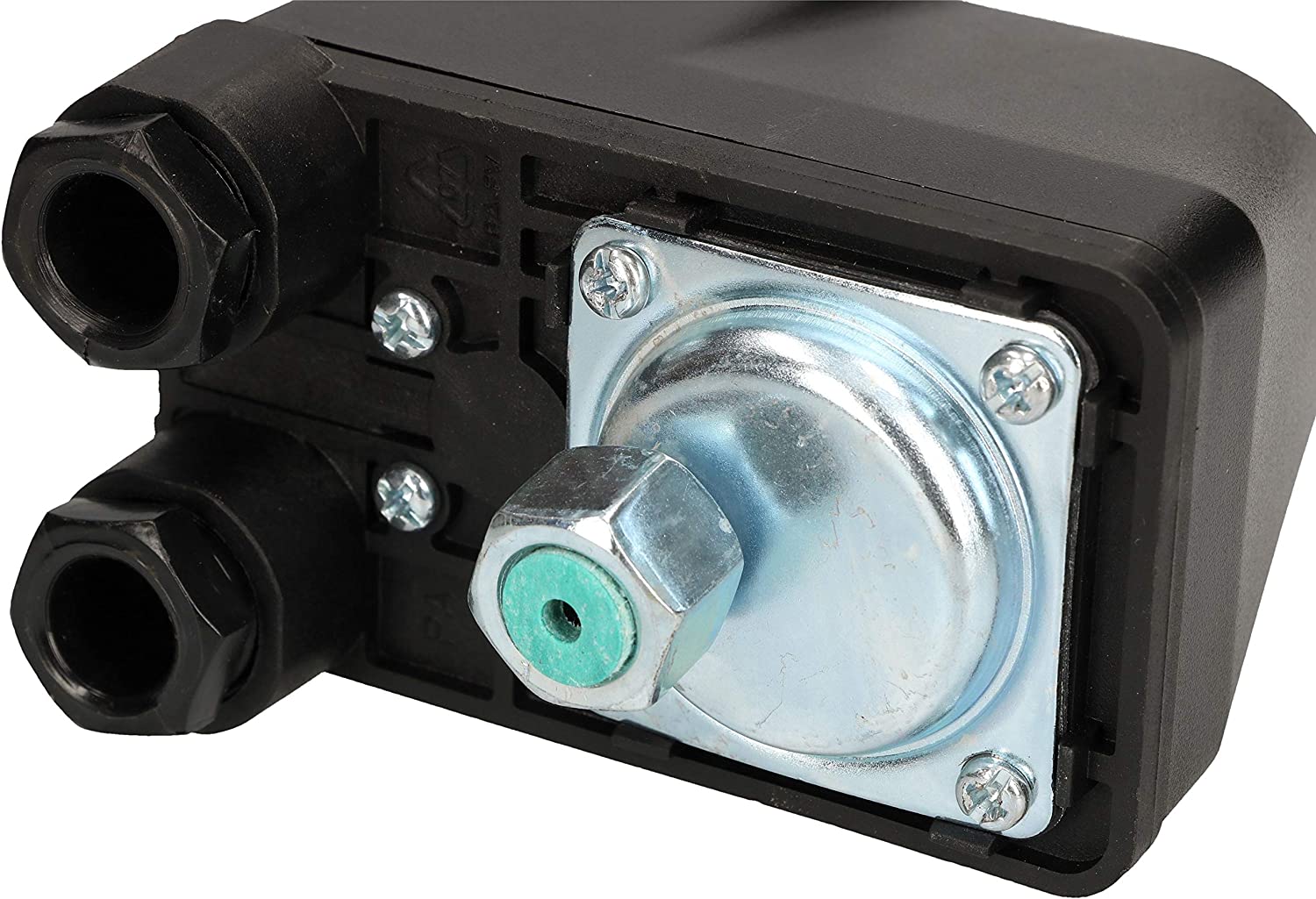 Caractéristiques techniques : pressostat – raccordement : F1/4 pouce rotatif, tension : ~230V/50Hz, plage de réglage : 1-5 bar, réglage d’usine : 1,4-2,8 bar, min. Différence de pression – 0,6 bar, max. Différence de pression – 2,5 bars, max. Température de fonctionnement – 55 degrés Celsius, fonctionnement continu 10 A, fonctionnement de courte durée 16 A, matériau : plastique, alliage, poids : 360 g, couleur : noir