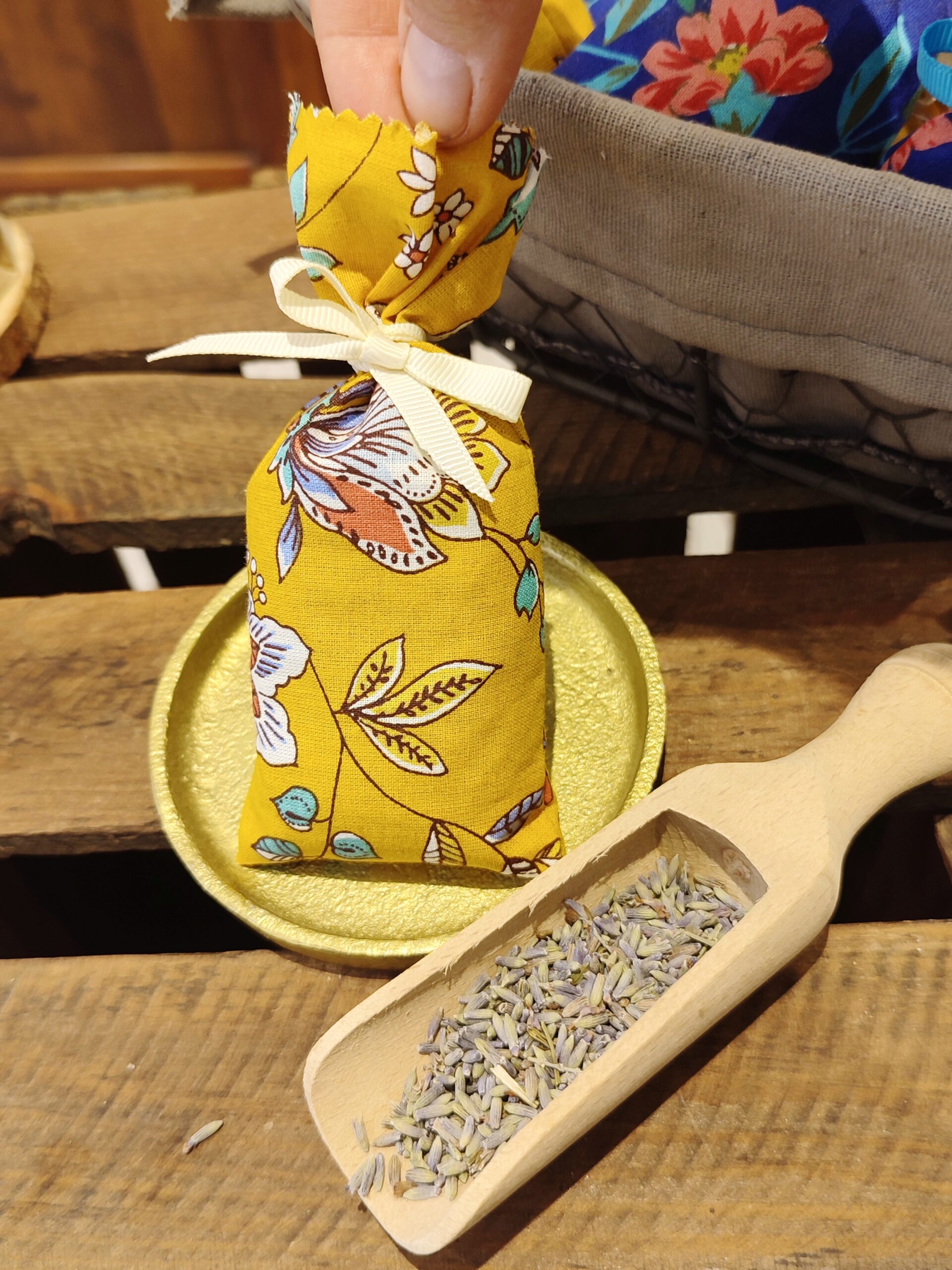 Cousu avec amour par nos petites mains, le tissu est issu de chutes que nous recyclons pour l’occasion et notre lavandin est français, d’origine biologique.