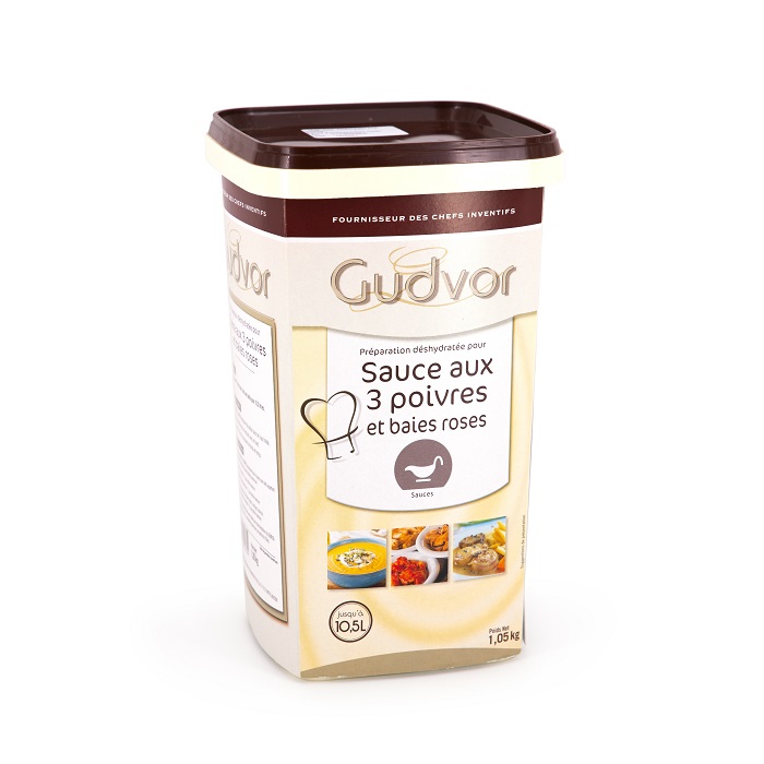 Sauce réalisée avec du poivre noir, blanc et vert, à utiliser en nappage sur les viandes de bœuf, l’andouillette !