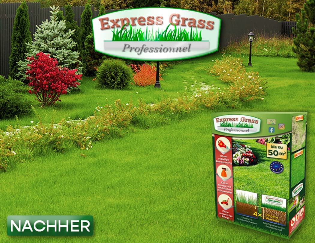 Pelouse express professionnelle – fiable, résistante au froid et à la chaleur – germination ultra-rapide et dense (10 jours) – toutes zones climatiques (1 pack (50 m²)