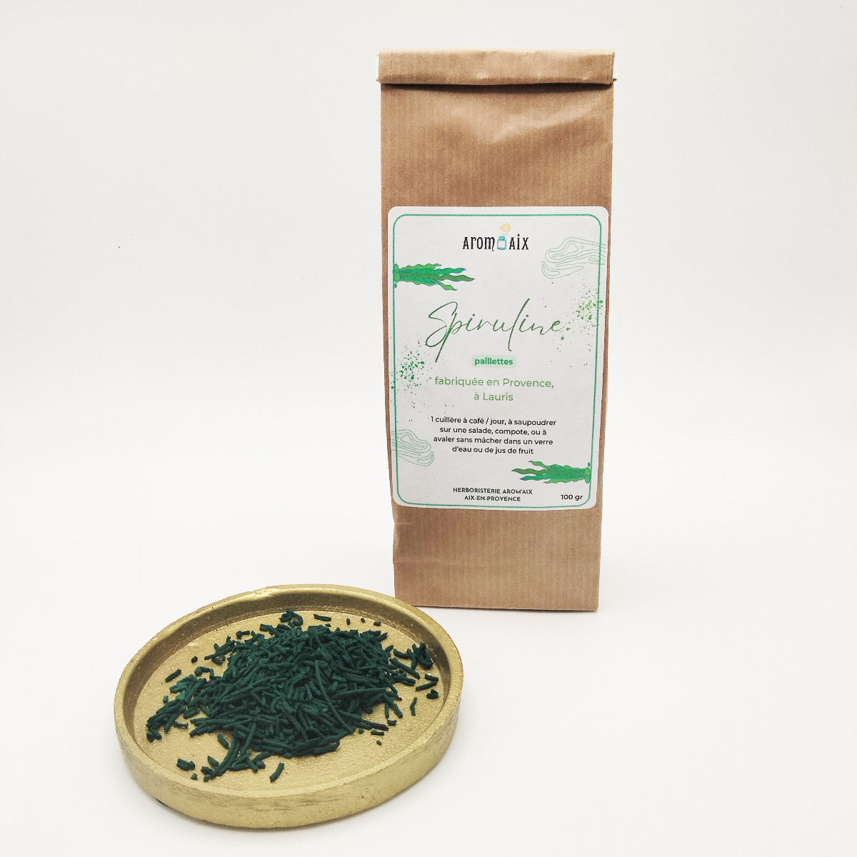 Spiruline crue en paillettes de production française artisanale, à déguster nature ou en assaisonnement de vos plats cuisinés. Notre spiruline est séchée à température ambiante pour conserver toutes les qualités nutritionnelles.