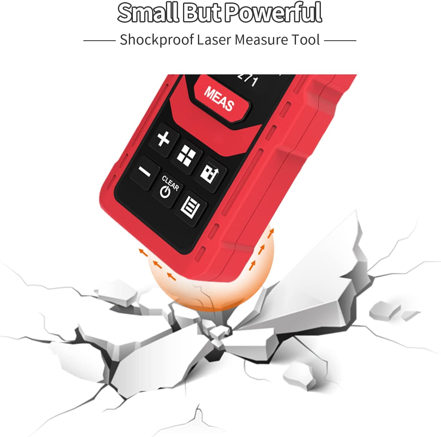Haut degré de protection : la dimension laser atteint le niveau de protection IP54 (antichoc, antipoussière, antichoc, résistant à l’usure, résistant aux chocs). Le boîtier robuste et de haute qualité résistant aux chocs offre 1,2 m et est compact et léger pour une prise en main facile