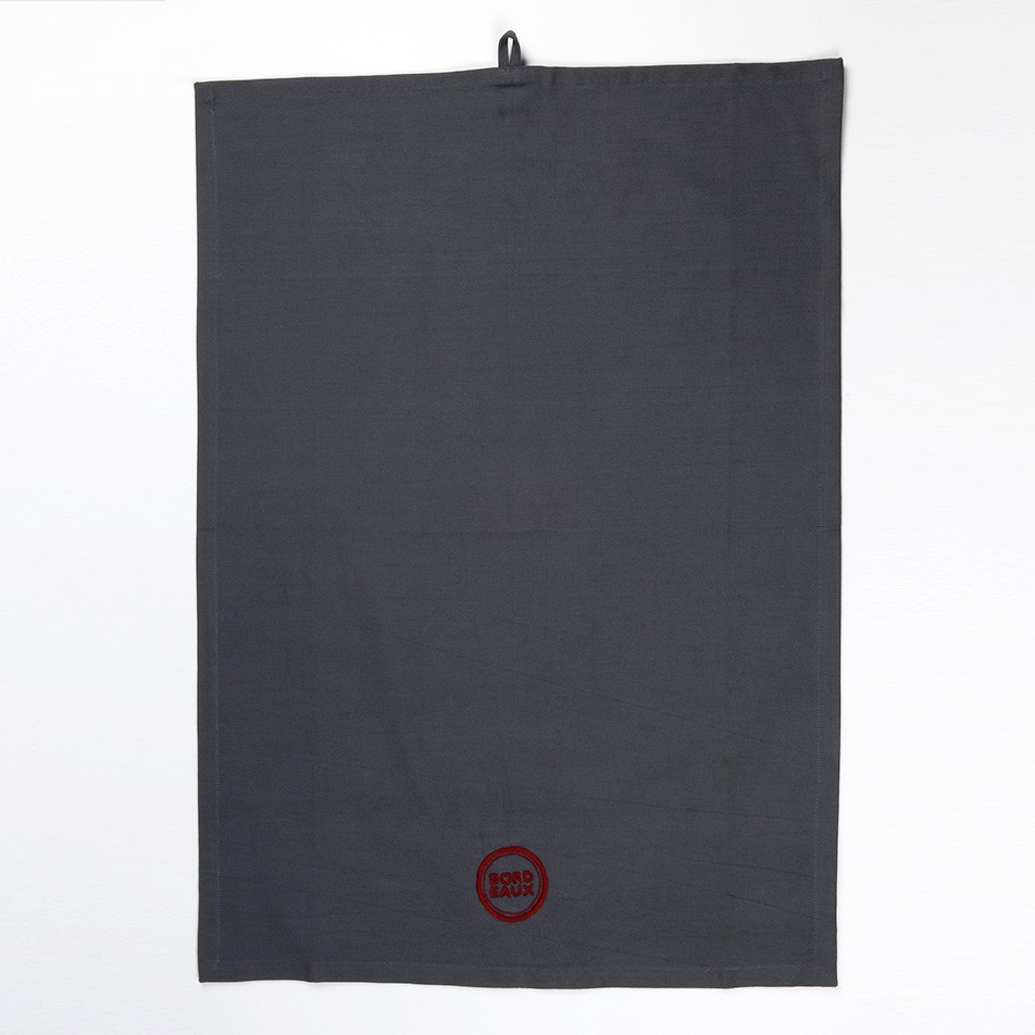 Torchon gris 100% coton et brodé à la main estampillé de la marque BORDEAUX Ville de Cœur©.