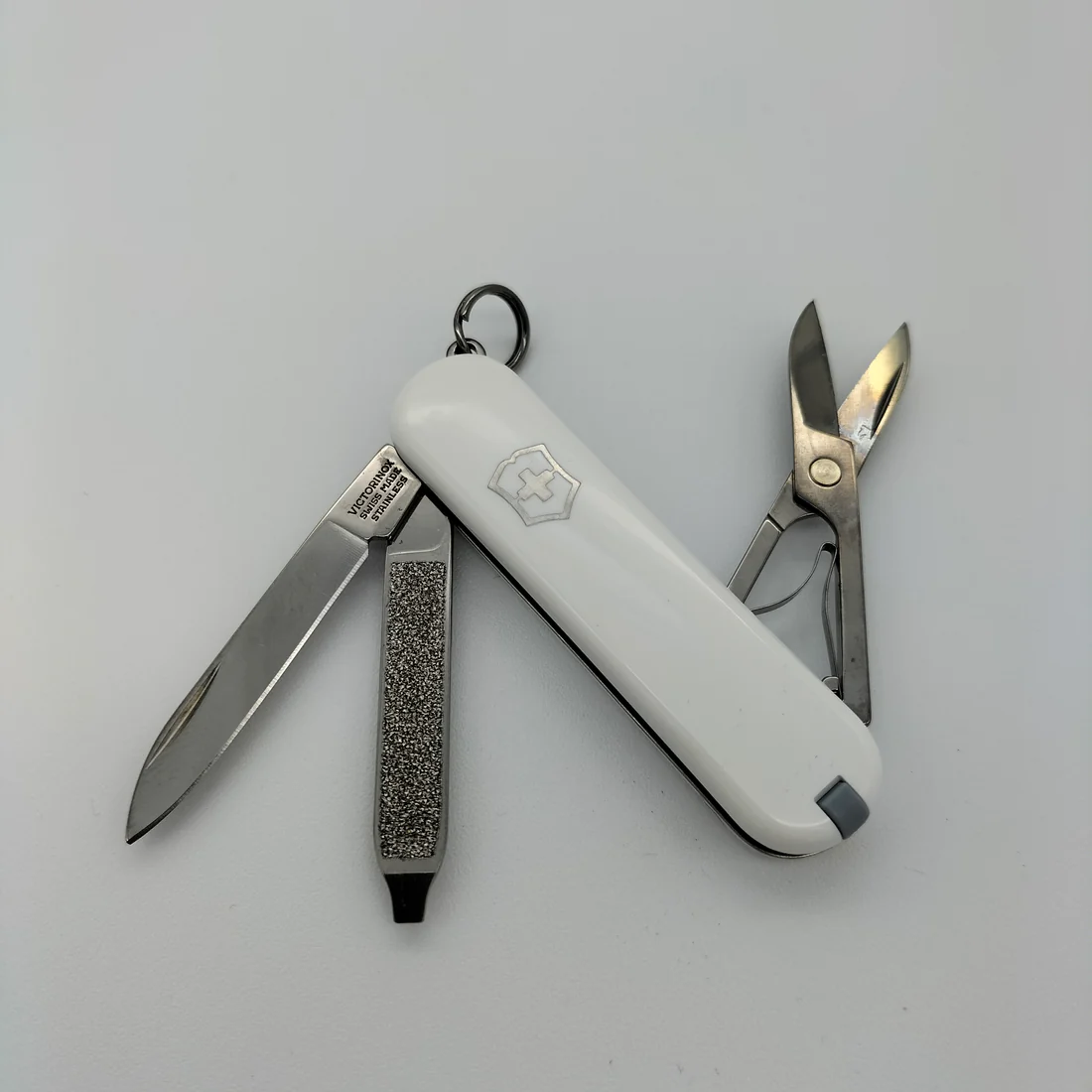 Les caractéristiques distinctives de ce couteau comprennent un cure-dents et des pincettes, soulignant son attention minutieuse aux détails pour les situations d’urgence. Équipé de ciseaux pour des coupes précises, d’une lime à ongles pour l’entretien personnel, d’un tournevis de 2,5 mm pour de petites réparations, et d’un anneau pour une fixation sécurisée, le Classic offre également une petite lame pour une polyvalence accrue.